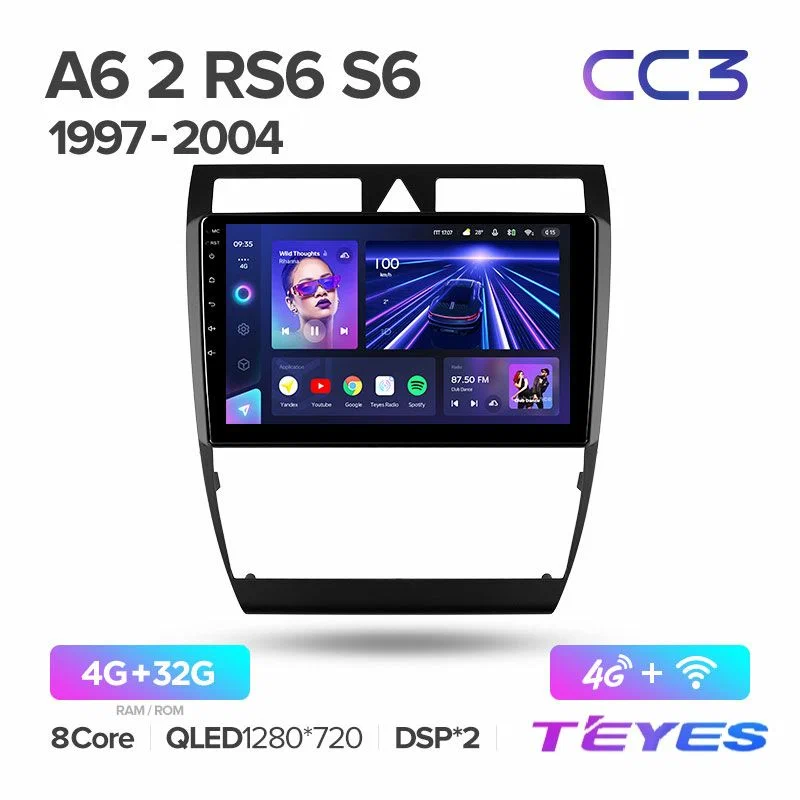 Teyes CC3 ОС Android Память 4/32, Wi-Fi, 4G, QLED экран. Звуковой процессор DSP. Процессор 8 ядер.