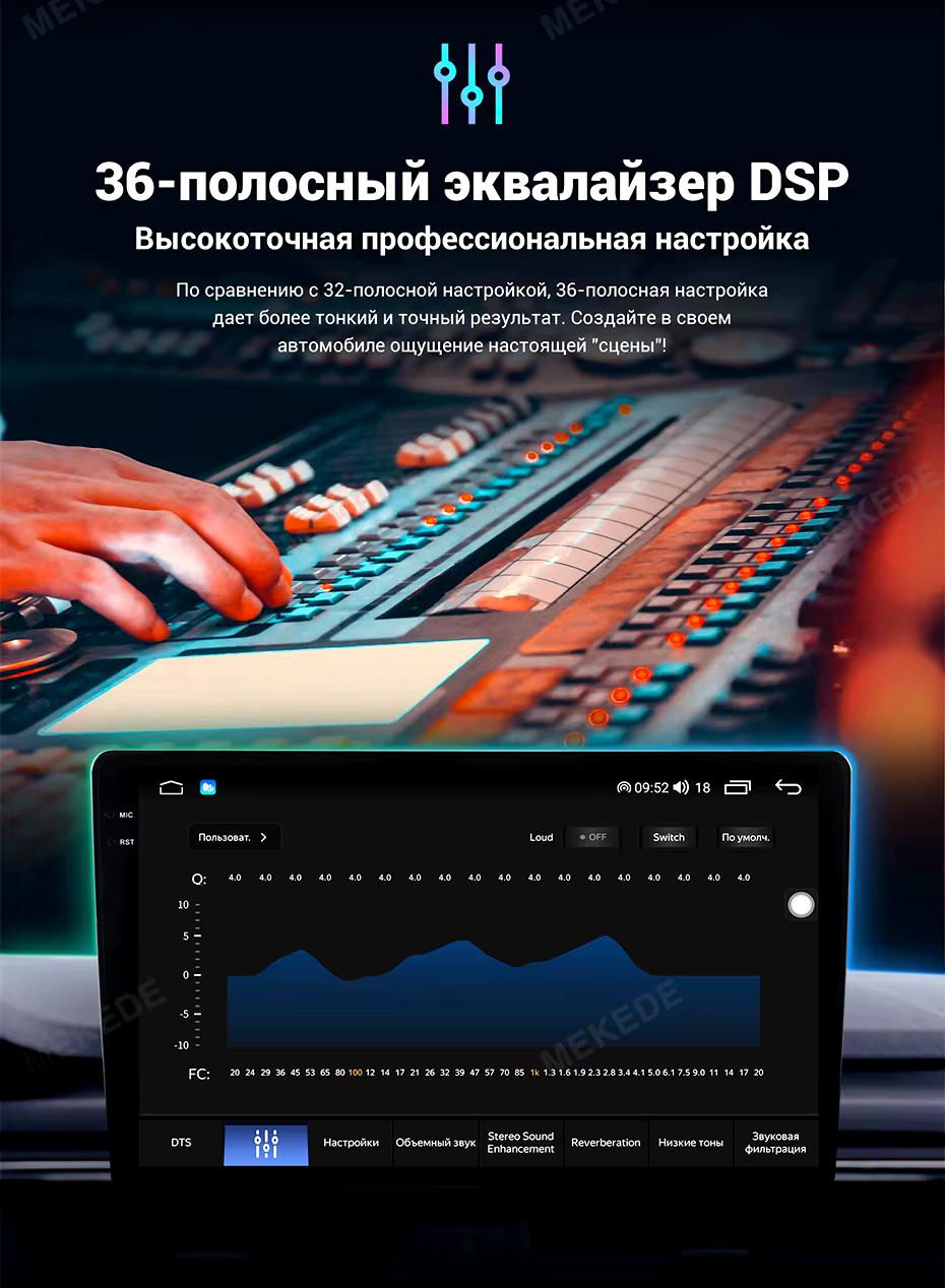 Расширенные звуковые настройки по сравнению с предыдущими версиями, звучание даже на штатных колонках изменится гораздо в лучшую сторону и звук можно максимально настроить под себя! Есть функция разделения экрана на две части и слот под сим-карту 4G, что очень удобно в дороге! Смена тем экрана, а также поддержка Wi-FI, Bluetooth, Carplay и много другого!