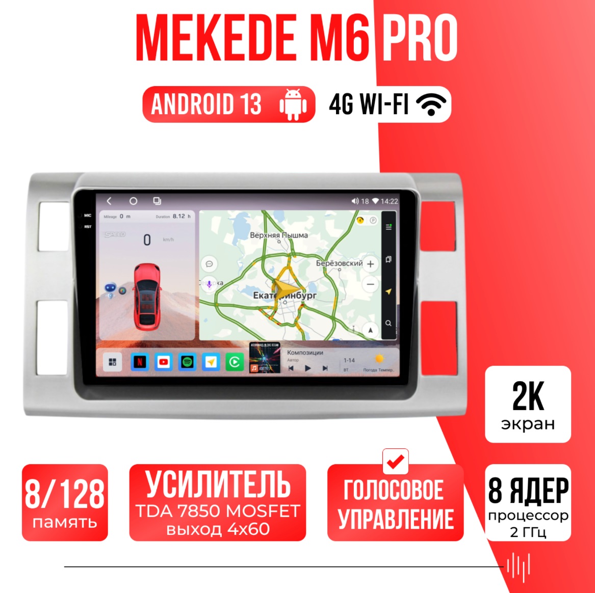 Есть функция разделения экрана на две части и слот под сим-карту 4G, что очень удобно в дороге! Смена тем экрана, а также поддержка Wi-FI, Bluetooth, Carplay, подключение задней камеры.