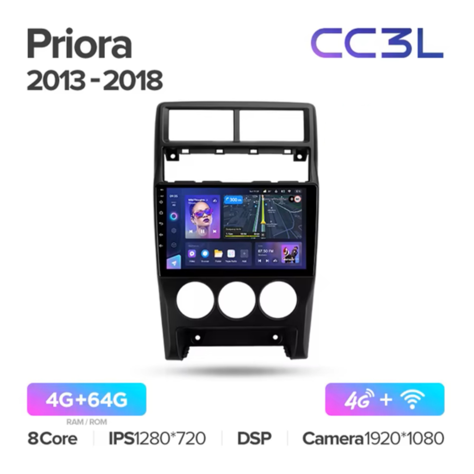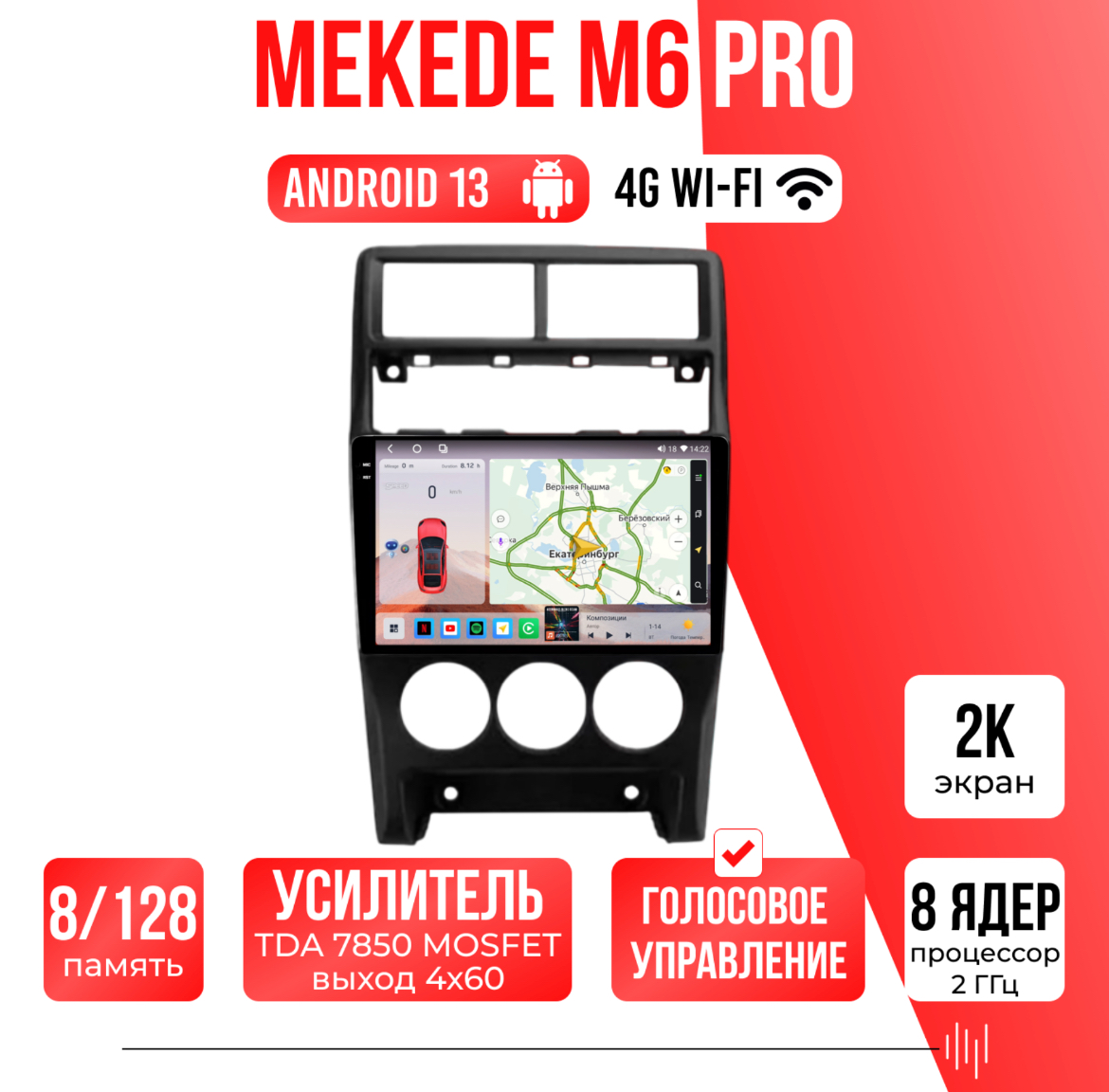 Есть функция разделения экрана на две части и слот под сим-карту 4G, что очень удобно в дороге! Смена тем экрана, а также поддержка Wi-FI, Bluetooth, Carplay и много другого!