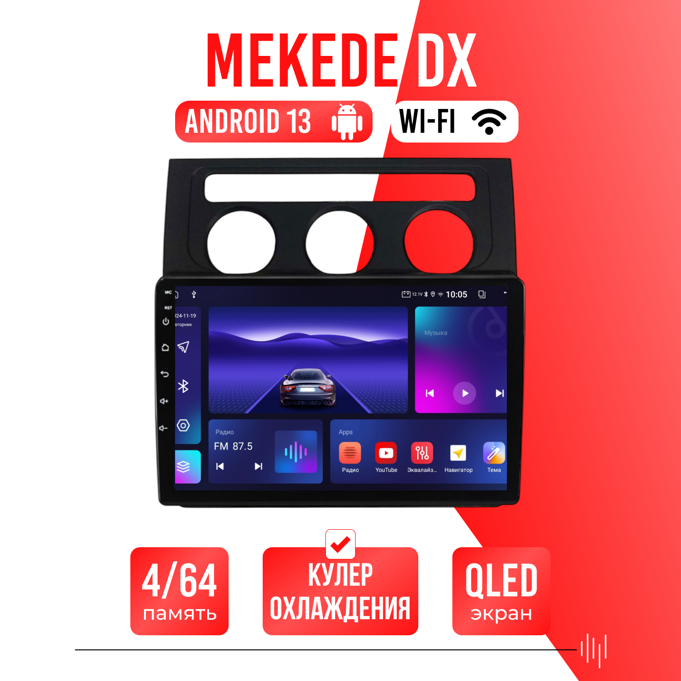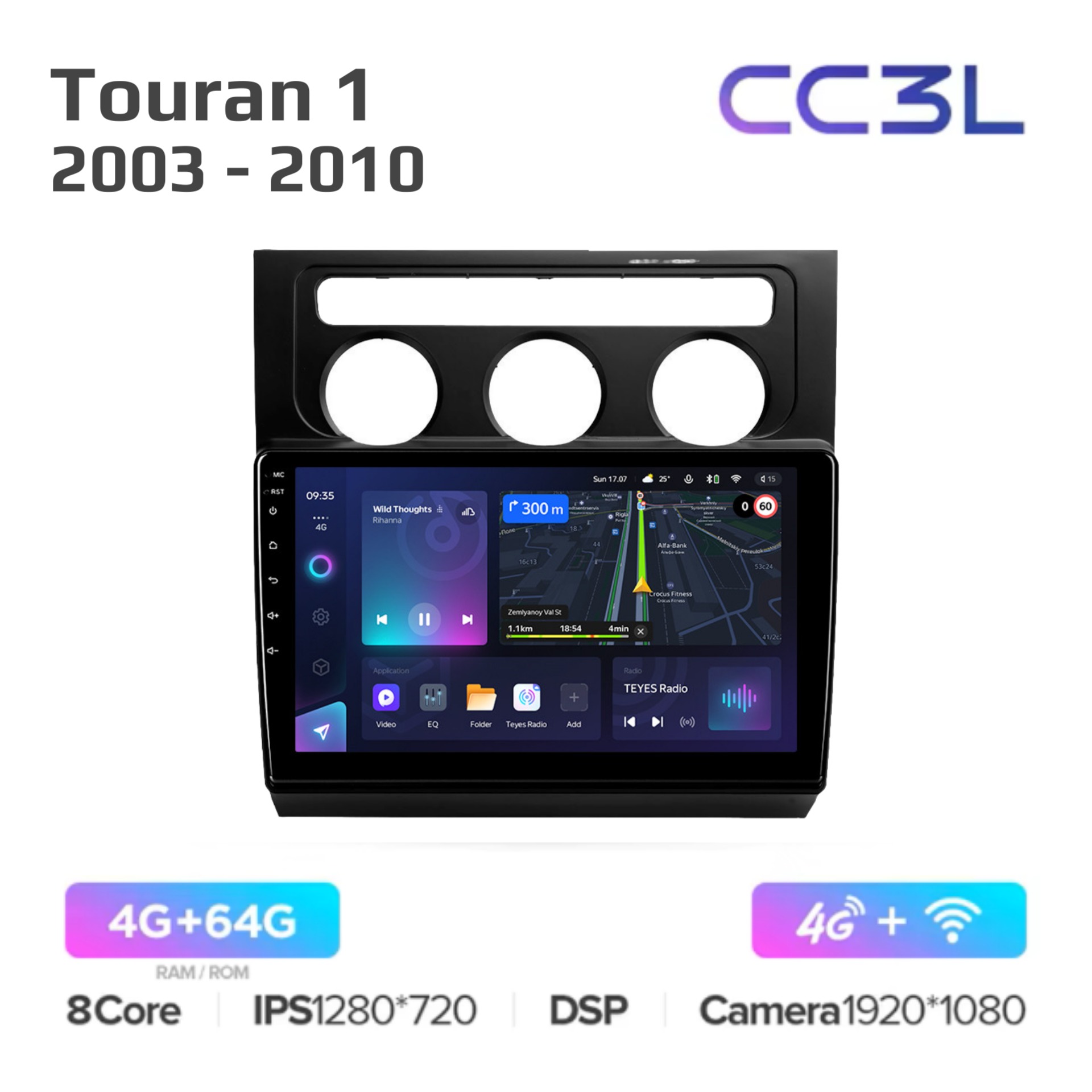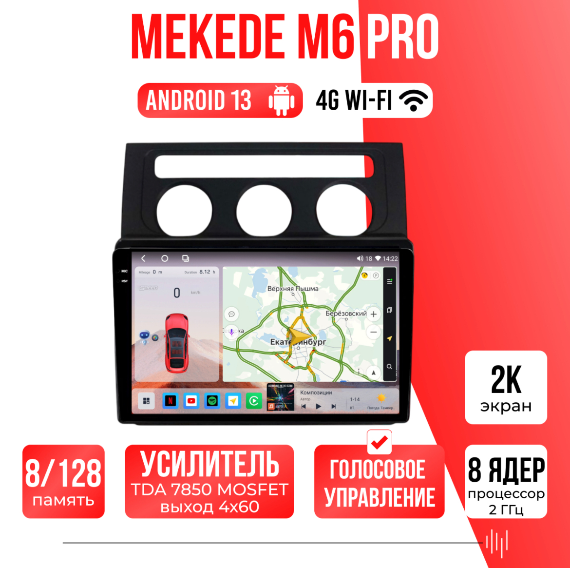 Есть функция разделения экрана на две части и слот под сим-карту 4G, что очень удобно в дороге! Смена тем экрана, а также поддержка Wi-FI, Bluetooth, Carplay, подключение задней камеры.