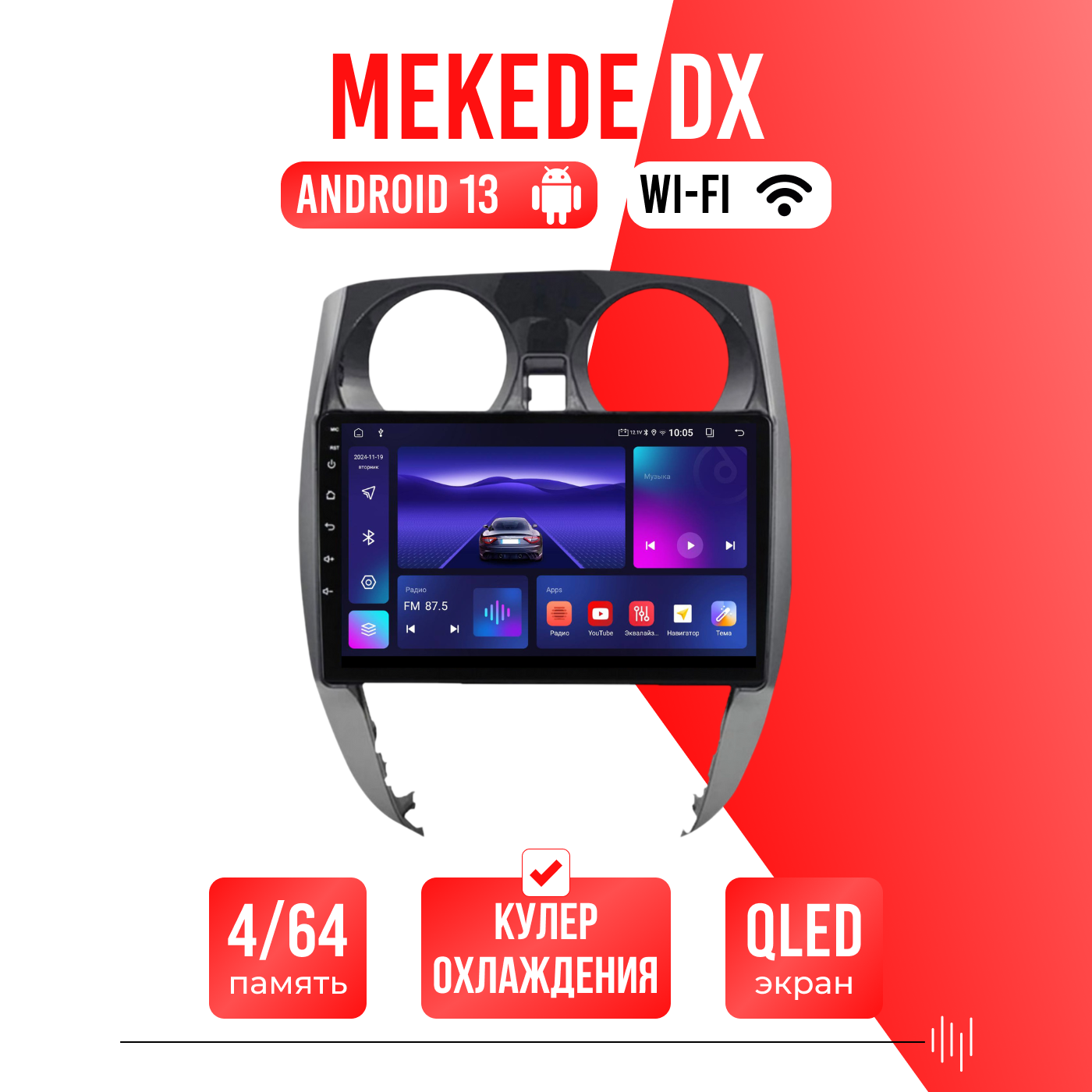 Различные звуковые настройки, звучание даже на штатных колонках изменится в лучшую сторону! А также поддержка Wi-FI, Bluetooth, Carplay, подключение задней камеры.