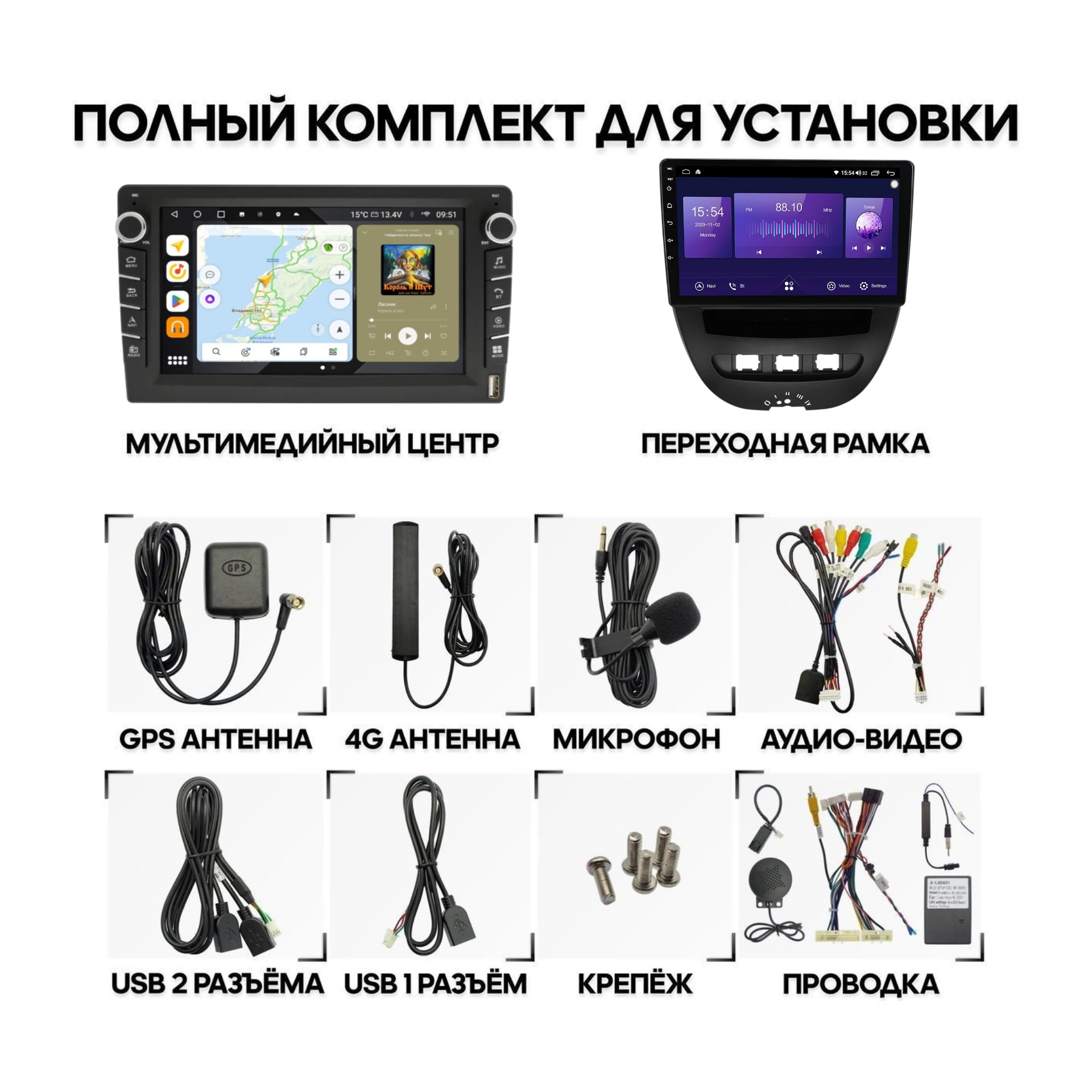 *Дополнительно переходник на антенну и CANBUS в зависимости от автомобиля
