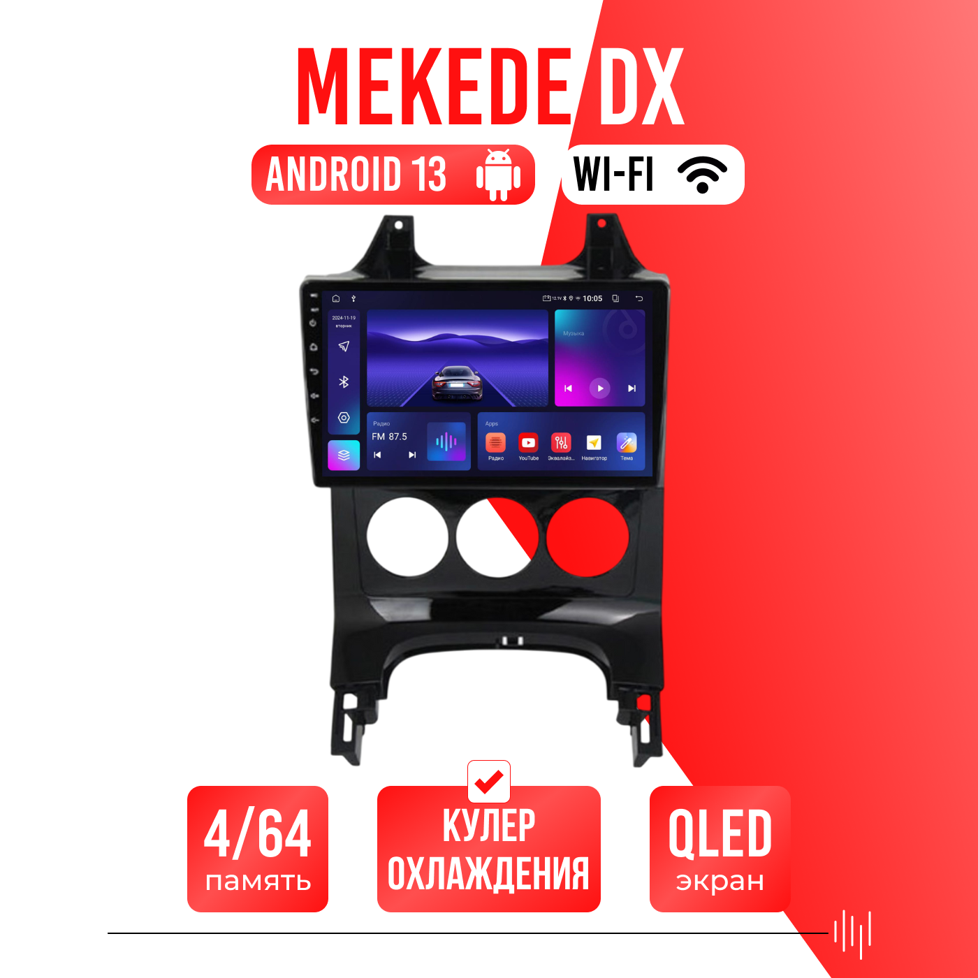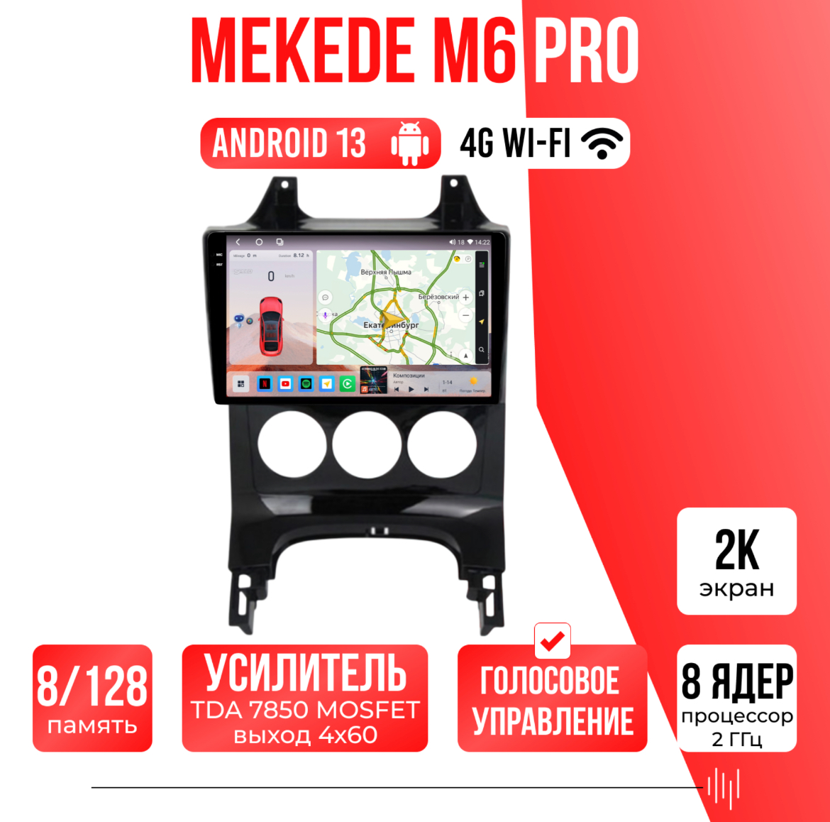 Есть функция разделения экрана на две части и слот под сим-карту 4G, что очень удобно в дороге! Смена тем экрана, а также поддержка Wi-FI, Bluetooth, Carplay, подключение задней камеры.