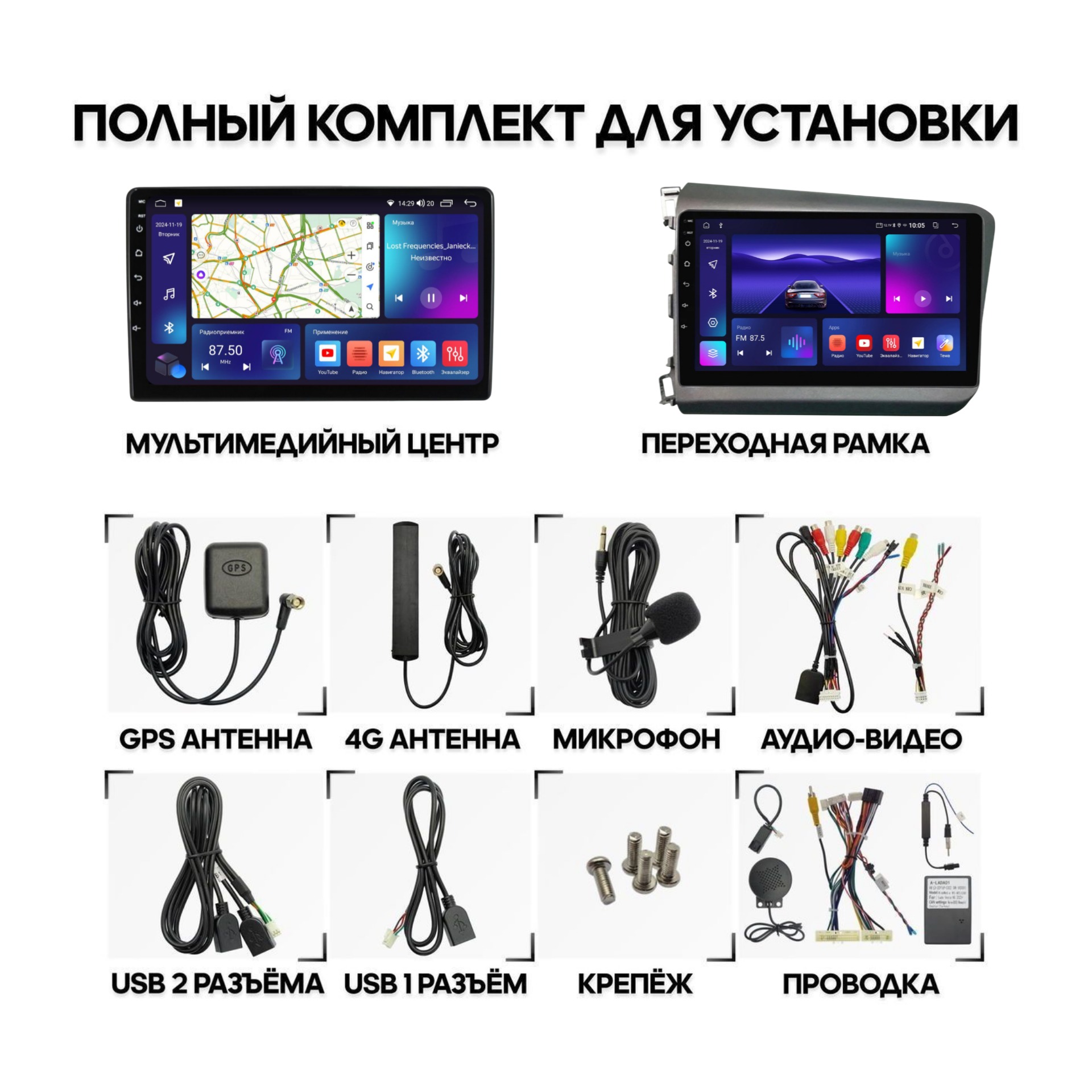 *Дополнительно переходник на антенну и CANBUS в зависимости от автомобиля
