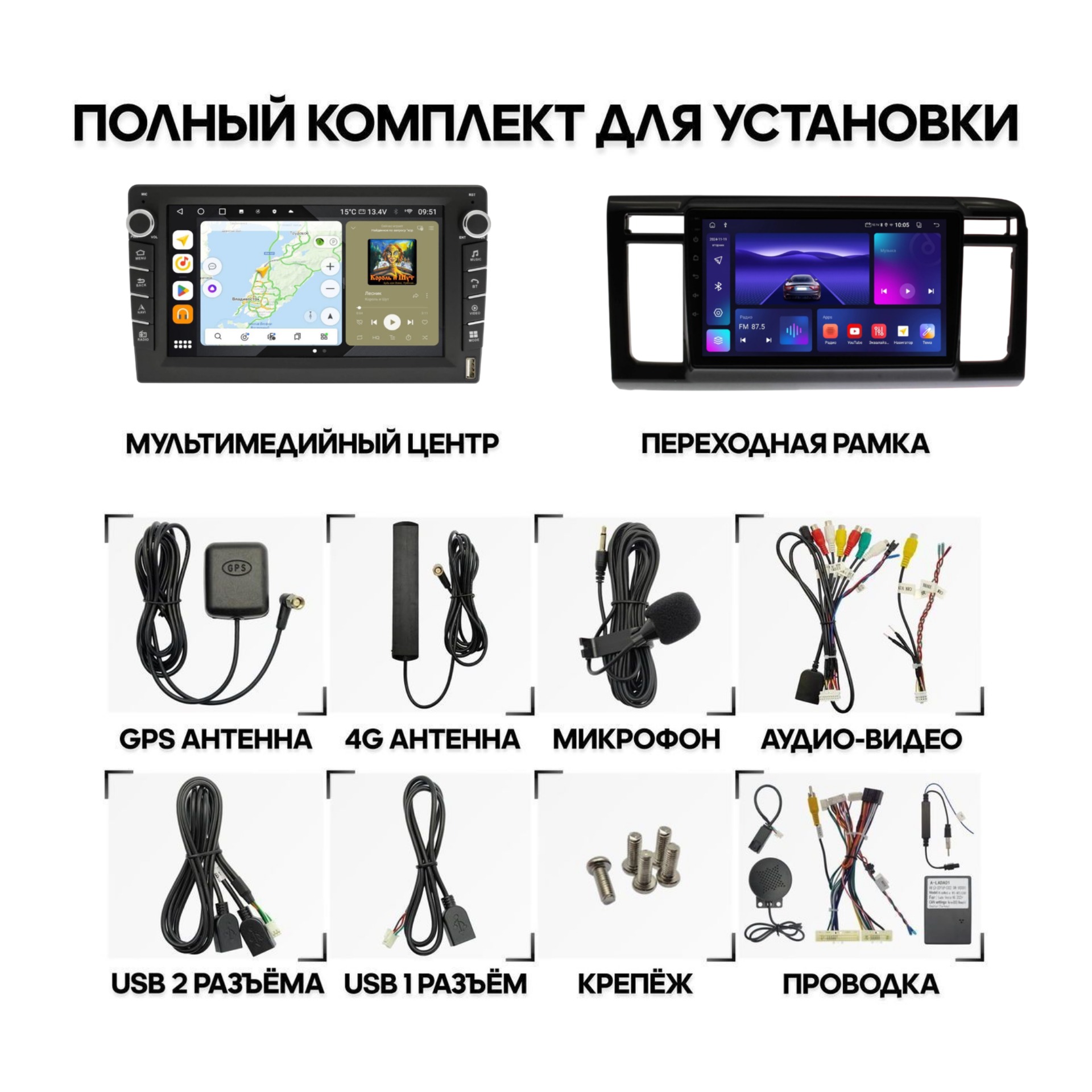 *Дополнительно переходник на антенну и CANBUS в зависимости от автомобиля