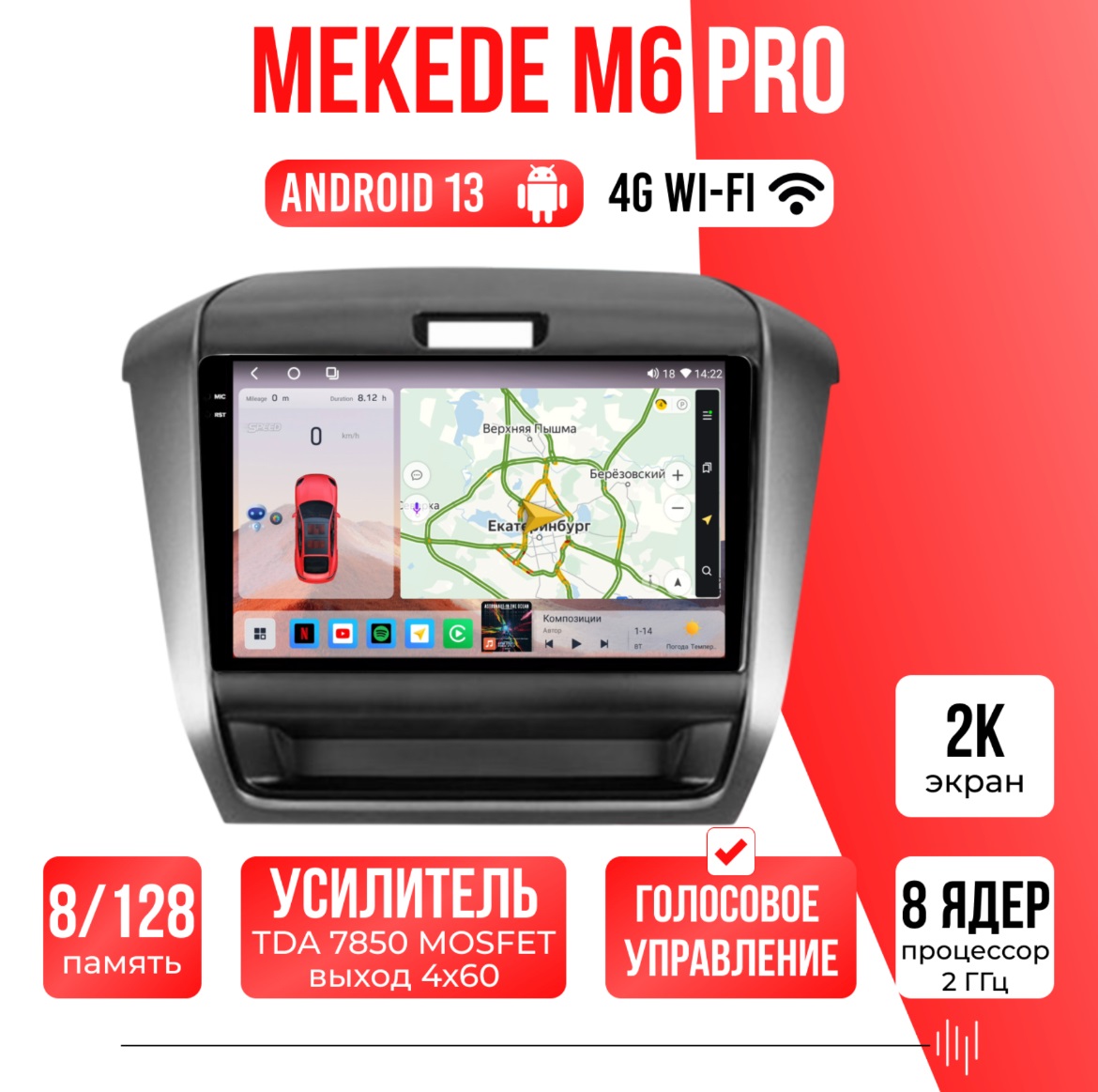 Магнитола имеет небольшой эквалайзер , а также поддержка Wi-FI, Bluetooth, подключение задней камеры, функция разделения экрана.
