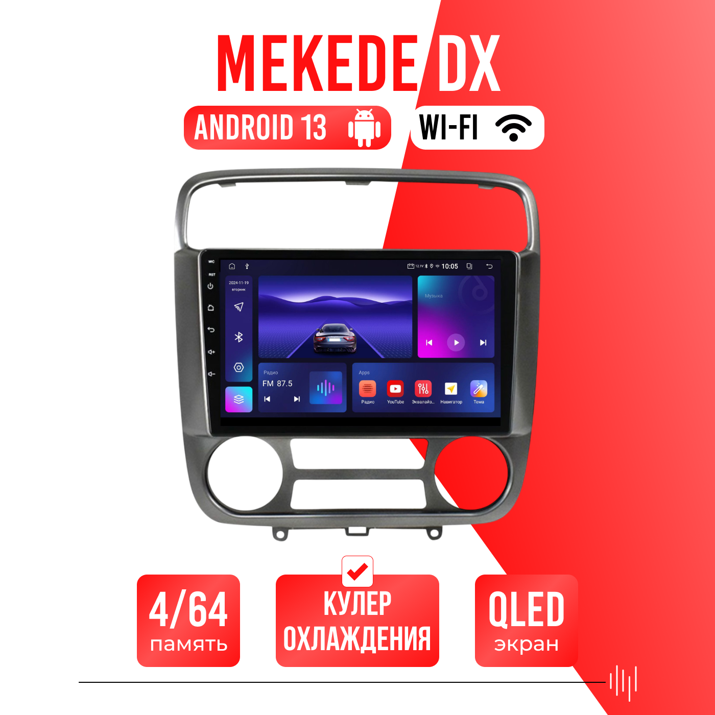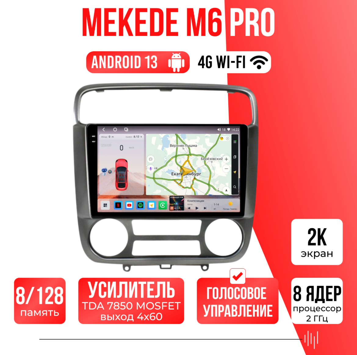 Различные звуковые настройки, звучание даже на штатных колонках изменится в лучшую сторону! А также поддержка Wi-FI, Bluetooth, Carplay, подключение задней камеры.