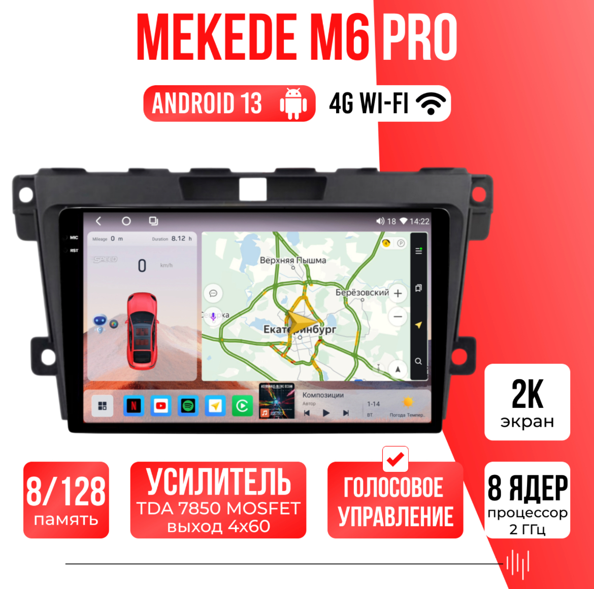 Есть функция разделения экрана на две части и слот под сим-карту 4G, что очень удобно в дороге! Смена тем экрана, а также поддержка Wi-FI, Bluetooth, Carplay, подключение задней камеры.