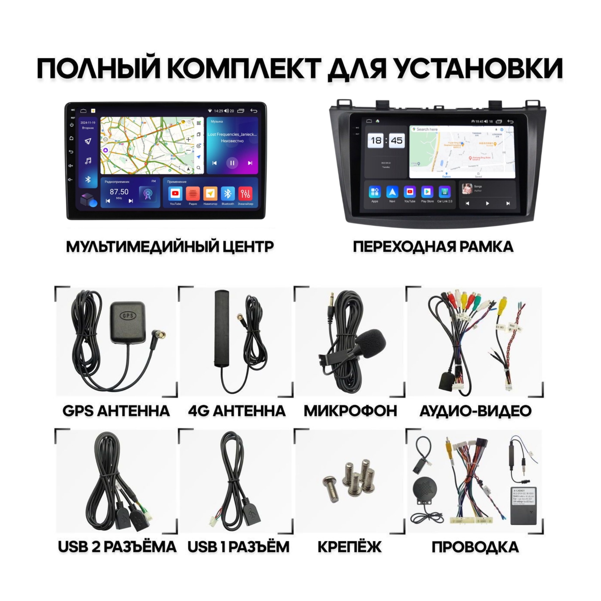 *Дополнительно переходник на антенну и CANBUS в зависимости от автомобиля