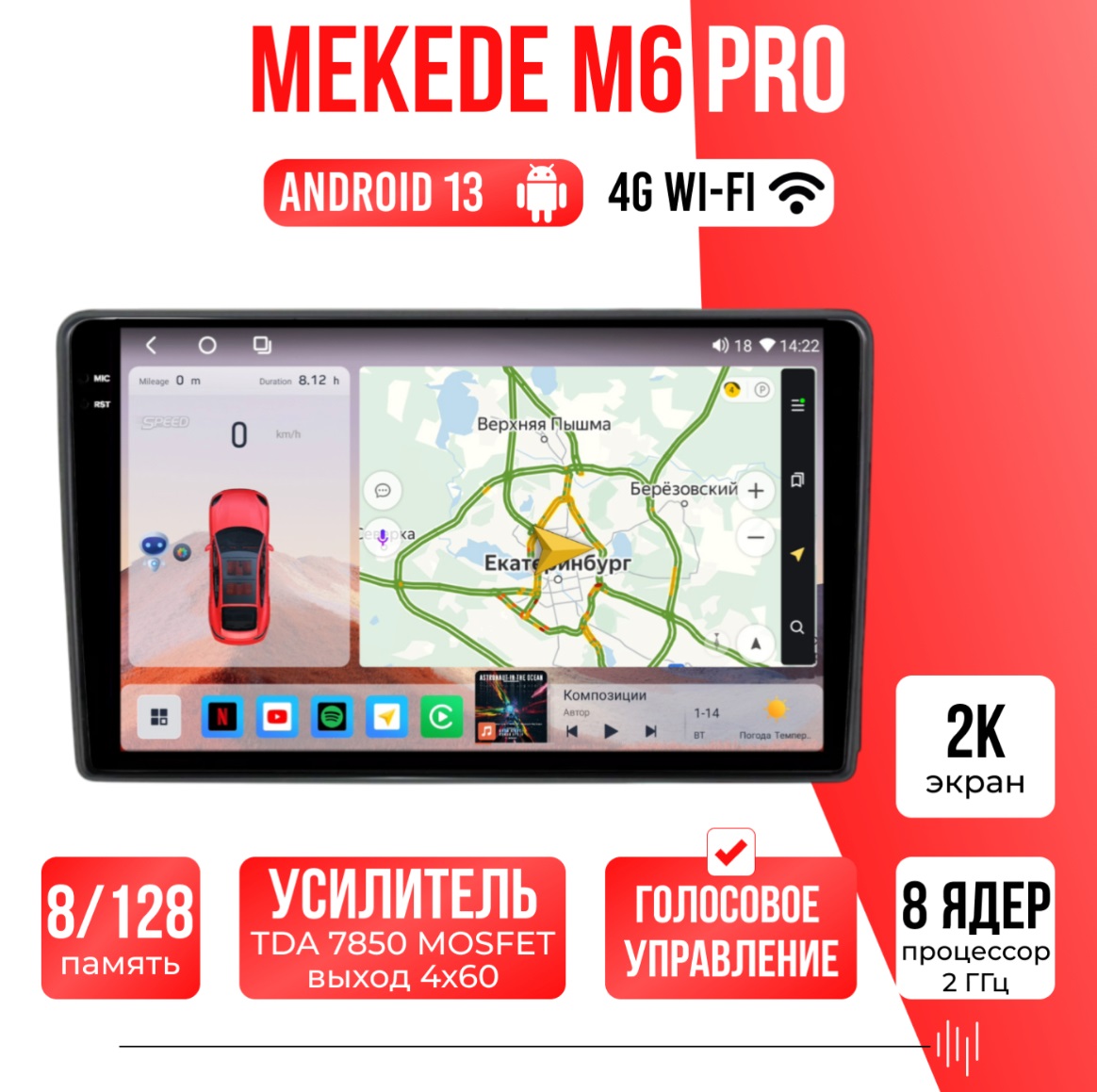 Различные звуковые настройки, звучание даже на штатных колонках изменится в лучшую сторону! А также поддержка Wi-FI, Bluetooth, Carplay, подключение задней камеры.