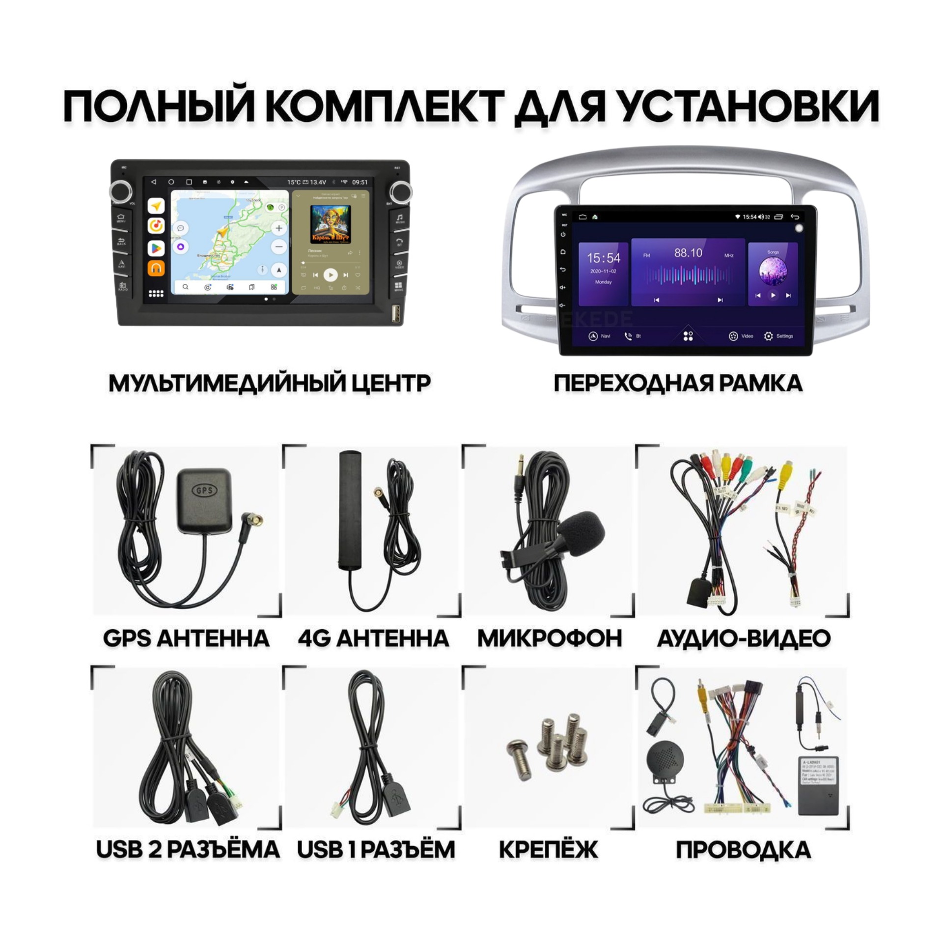 *Дополнительно переходник на антенну и CANBUS в зависимости от автомобиля
