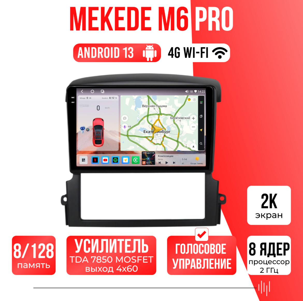 Различные звуковые настройки, звучание даже на штатных колонках изменится в лучшую сторону! А также поддержка Wi-FI, Bluetooth, Carplay, подключение задней камеры.