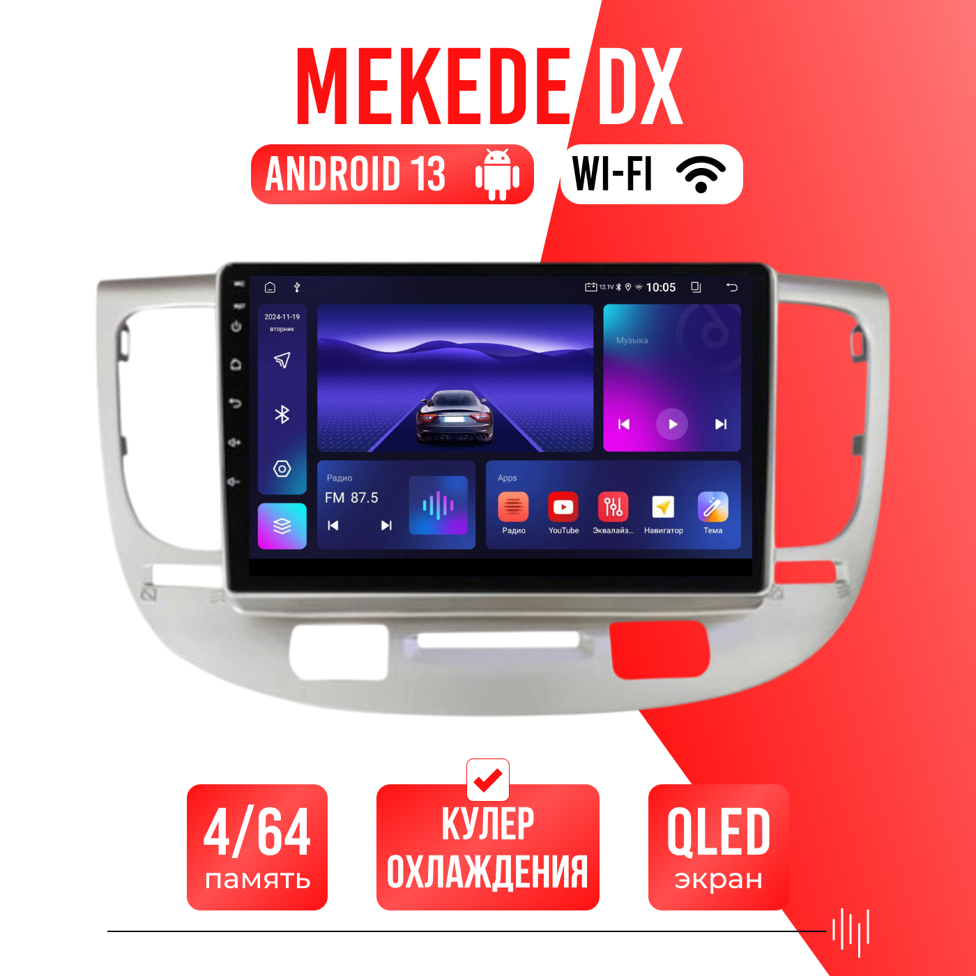 Различные звуковые настройки, звучание даже на штатных колонках изменится в лучшую сторону! А также поддержка Wi-FI, Bluetooth, Carplay, подключение задней камеры.