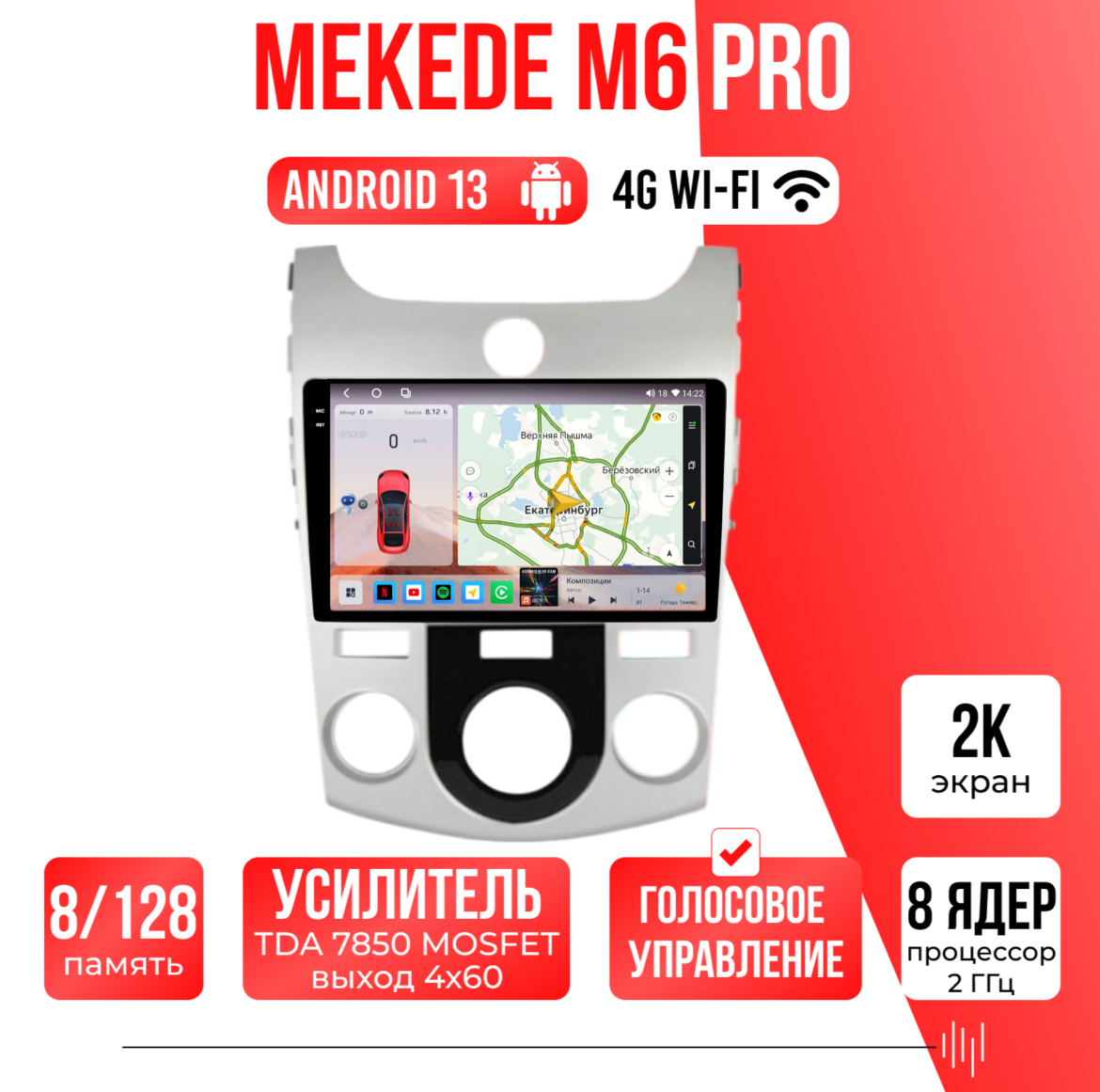Есть функция разделения экрана на две части и слот под сим-карту 4G, что очень удобно в дороге! Смена тем экрана, а также поддержка Wi-FI, Bluetooth, Carplay, подключение задней камеры.
