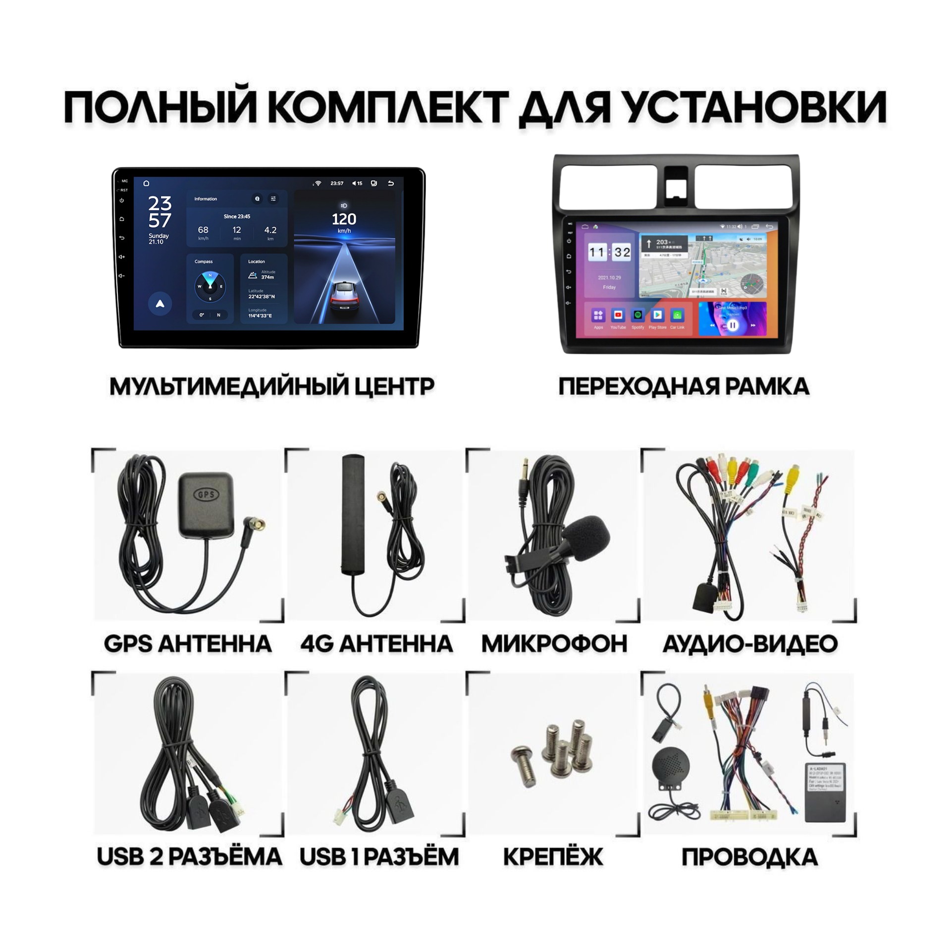*Дополнительно переходник на антенну и CANBUS в зависимости от автомобиля