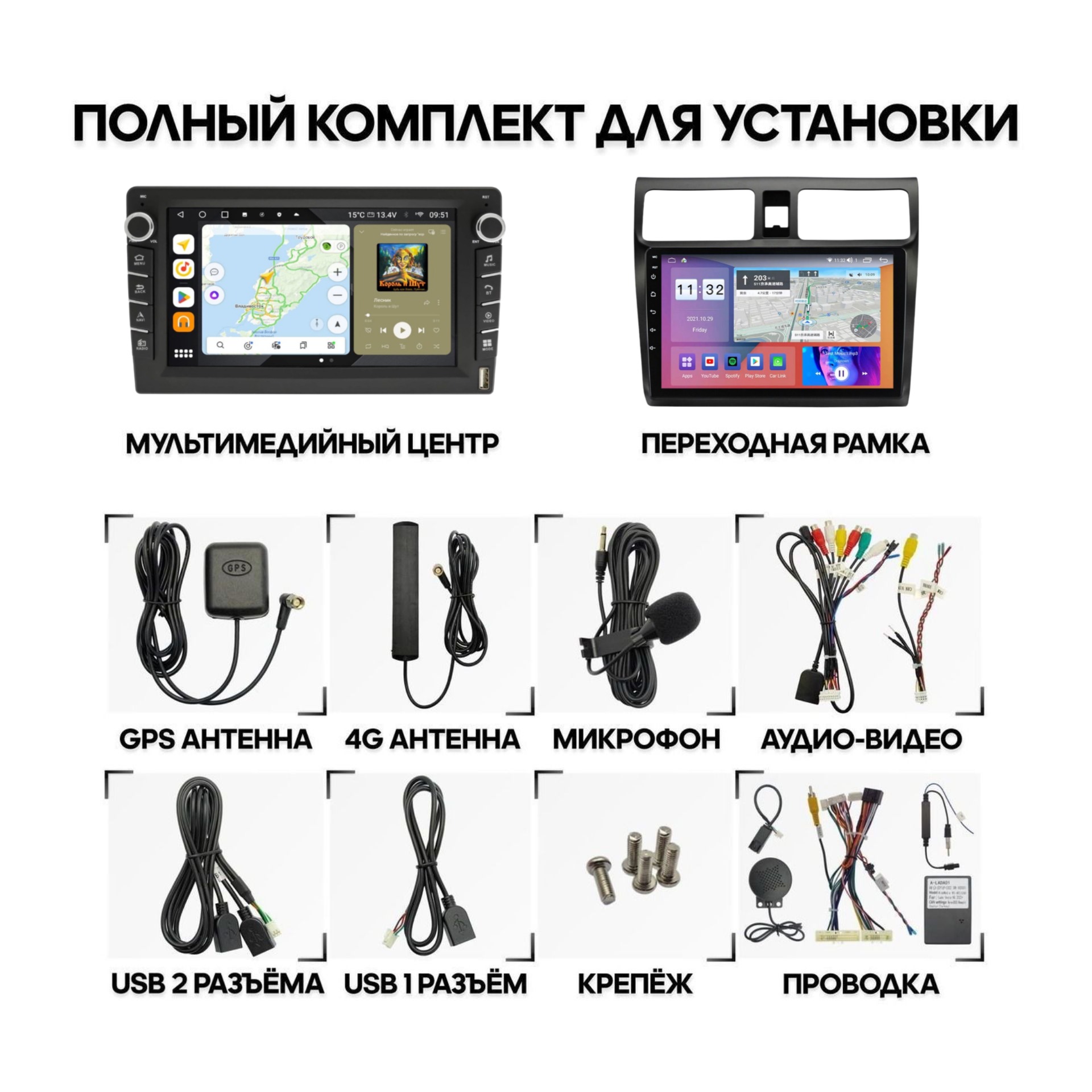 *Дополнительно переходник на антенну и CANBUS в зависимости от автомобиля