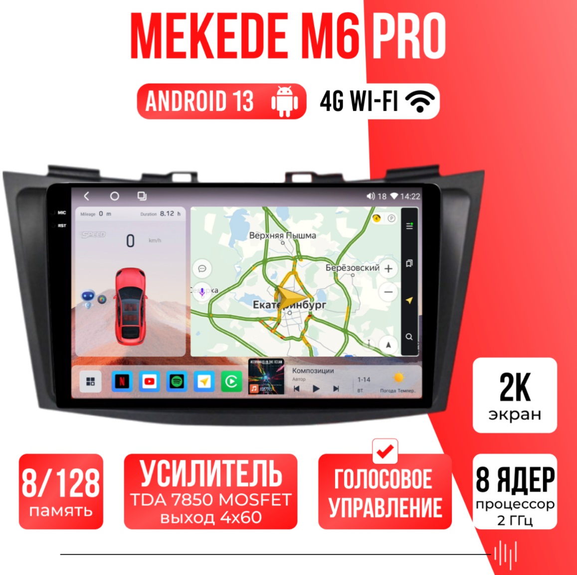 Расширенные звуковые настройки по сравнению с предыдущими версиями, звучание даже на штатных колонках изменится гораздо в лучшую сторону и звук можно максимально настроить под себя! Есть функция разделения экрана на две части и слот под сим-карту 4G, что очень удобно в дороге! Смена тем экрана, а также поддержка Wi-FI, Bluetooth, Carplay и много другого!