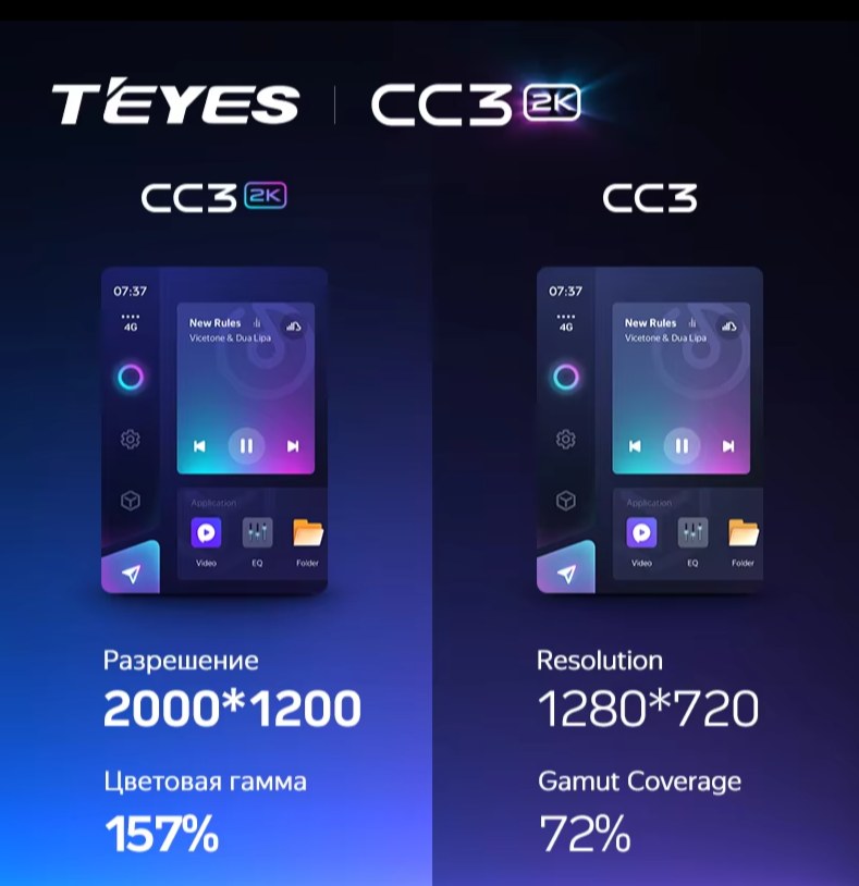 Расширенные звуковые настройки по сравнению с предыдущими версиями, звучание даже на штатных колонках изменится гораздо в лучшую сторону и звук можно максимально настроить под себя! Есть функция разделения экрана на две части и слот под сим-карту 4G, что очень удобно в дороге! Смена тем экрана, а также поддержка Wi-FI, Bluetooth, Carplay и много другого!