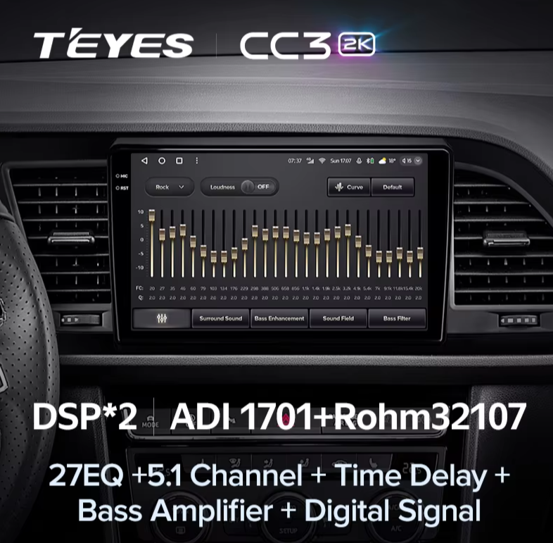 Данная версия имеет лучший экран на 2024 год сред всех Android магнитол с разрешением 2000*1200, а так же лучший звуковой процессор TDA7851 с выходом 4x50, и в добавок расширенный DSP модуль с кучей разных звуковых настроек.
