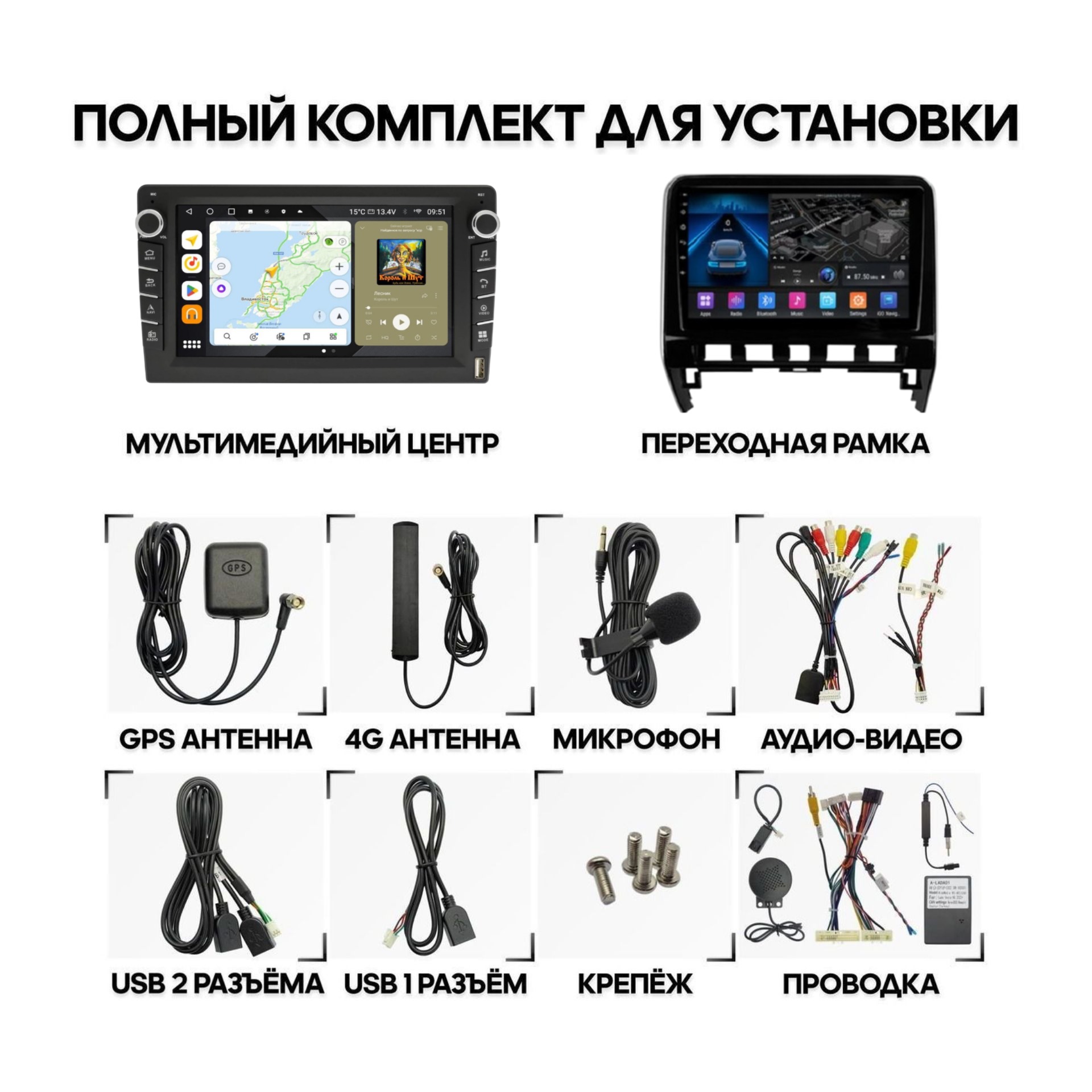 *Дополнительно переходник на антенну и CANBUS в зависимости от автомобиля