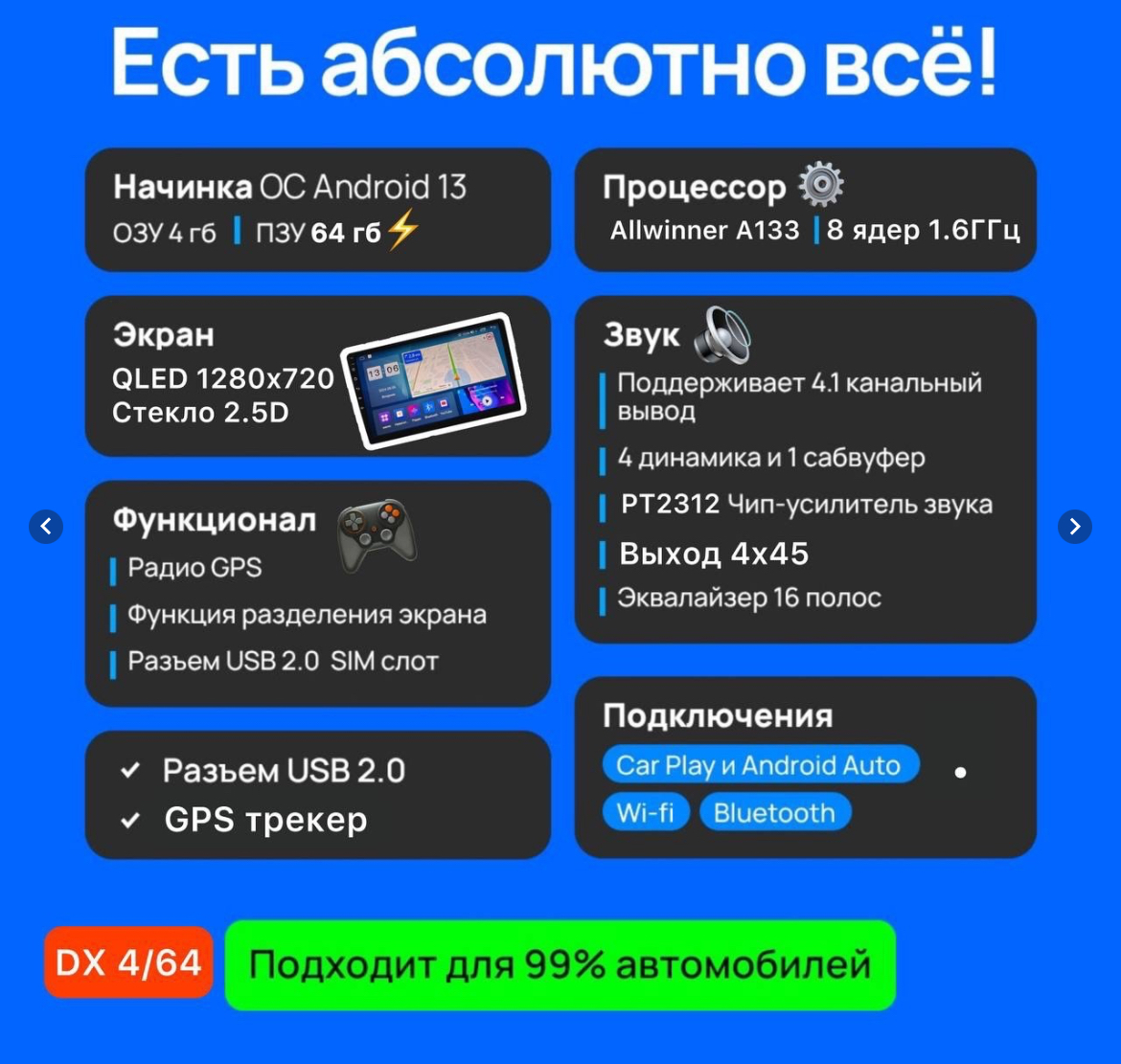 *Дополнительно переходник на антенну и CANBUS в зависимости от автомобиля