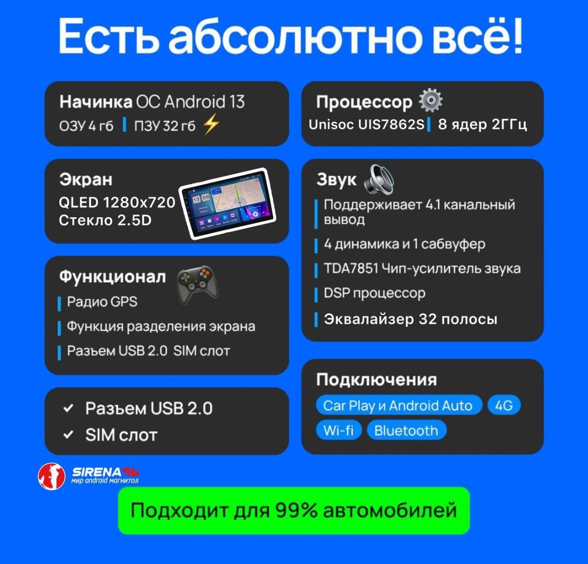 Sirena V2 PRO (ОС Android Память 4/32, Wi-Fi, 4G, QLED экран. Звуковой процессор DSP. Процессор 8 ядер.)