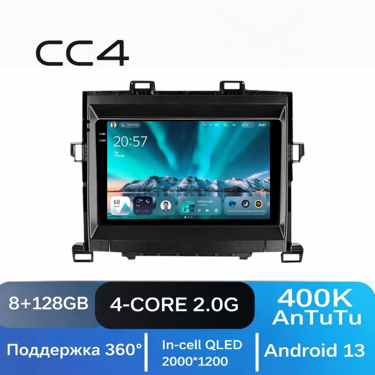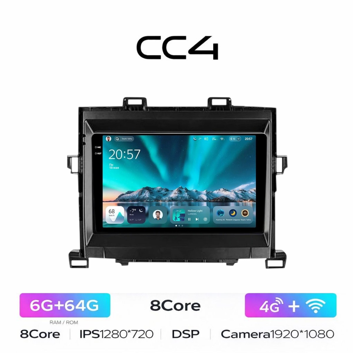 Расширенные звуковые настройки по сравнению с предыдущими версиями, звучание даже на штатных колонках изменится гораздо в лучшую сторону и звук можно максимально настроить под себя! Есть функция разделения экрана на две части и слот под сим-карту 4G, что очень удобно в дороге! Смена тем экрана, а также поддержка Wi-FI, Bluetooth, Carplay и много другого!