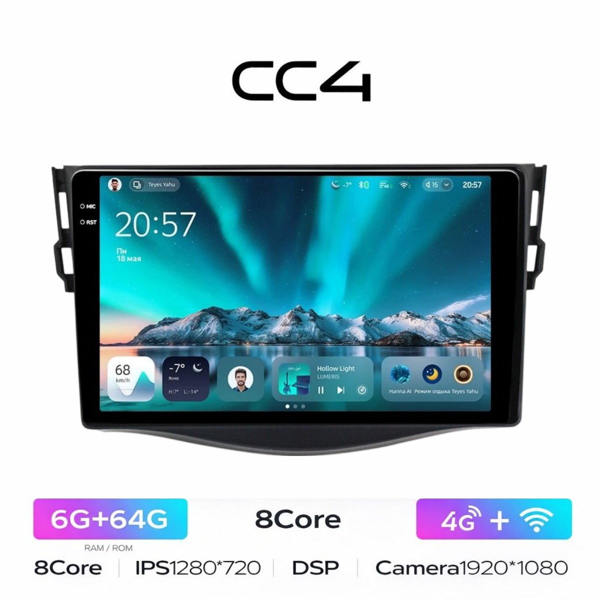Расширенные звуковые настройки по сравнению с предыдущими версиями, звучание даже на штатных колонках изменится гораздо в лучшую сторону и звук можно максимально настроить под себя! Есть функция разделения экрана на две части и слот под сим-карту 4G, что очень удобно в дороге! Смена тем экрана, а также поддержка Wi-FI, Bluetooth, Carplay и много другого!