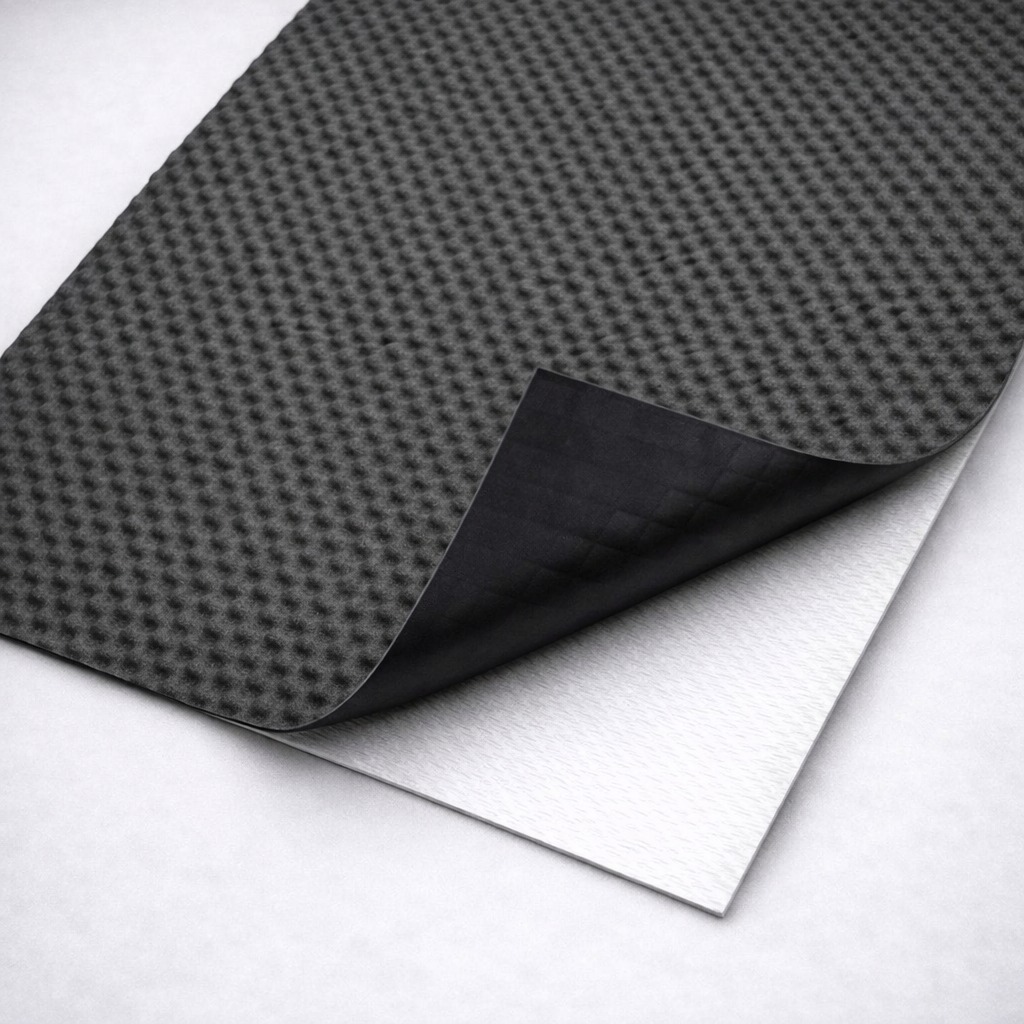 Герметон А15 - самоклеящийся шумопоглощающий материал, изготовлен на основе специального ППУ повышенной плотности и имеющий частично закрытоячеистую пористую структуру. Лицевая поверхность материал имеет рельеф в форме пирамидок (волны).