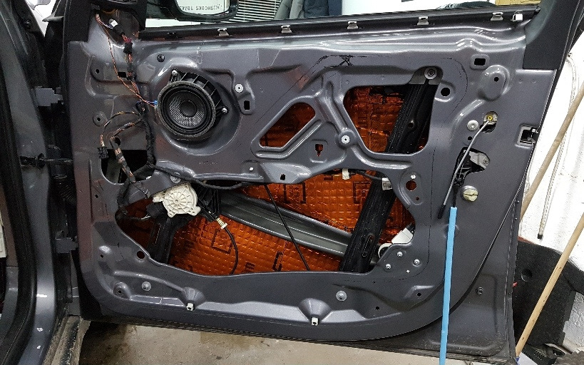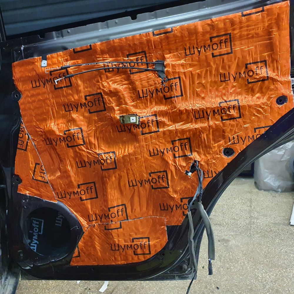 - Двери: на 4 двери, внутрь дверей, на металл 14 - 16 листов, на пластиковые обшивки дверей и технические отверстия 10 - 12 листов