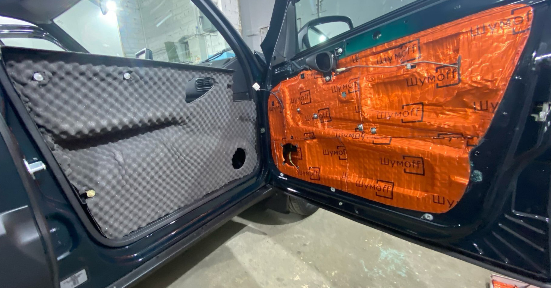 В составе виброизоляции шумофф, есть ингибиторы коррозии, которые замедляют процессы окисления металла (коррозии) в 1000 раз, тем самым мы защищаем кузов. Даже установив материал на место, где уже есть очаги коррозии, мы остановим этот процесс, он замедлится и не пойдет дальше.