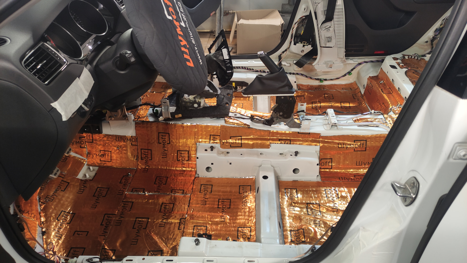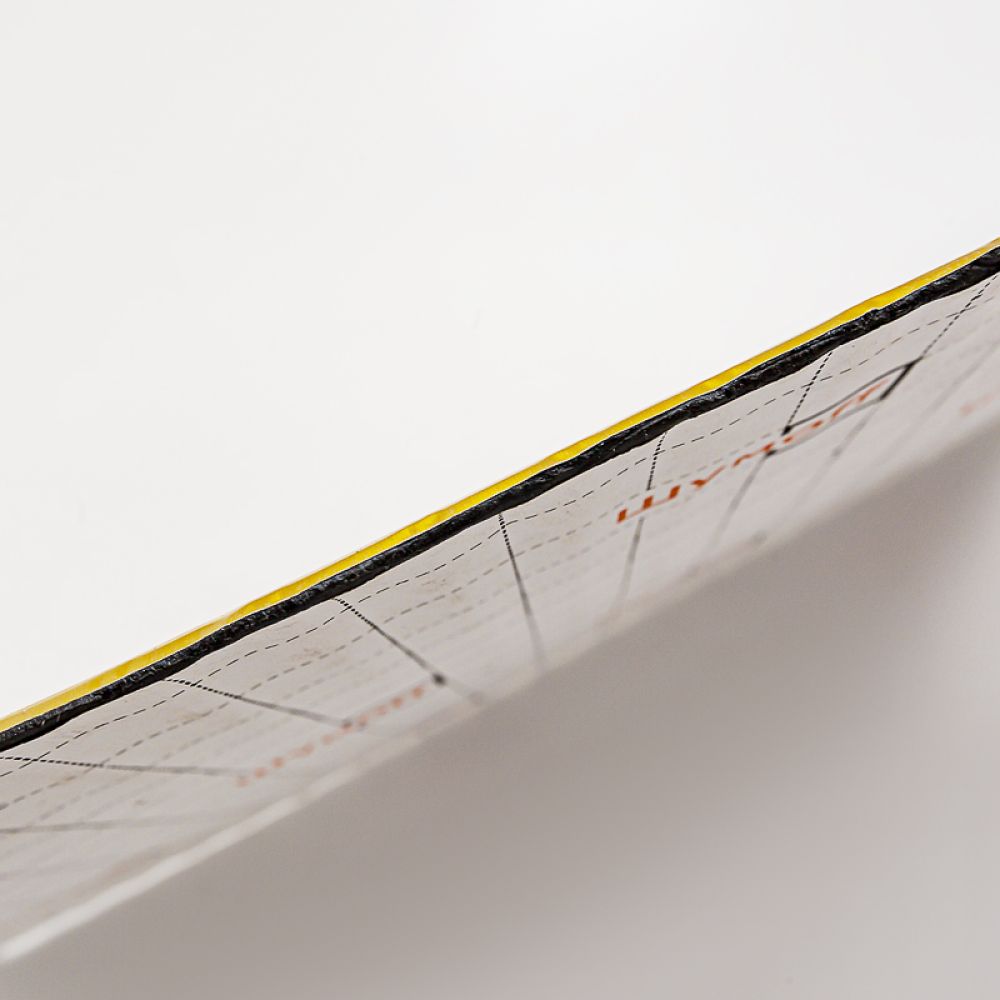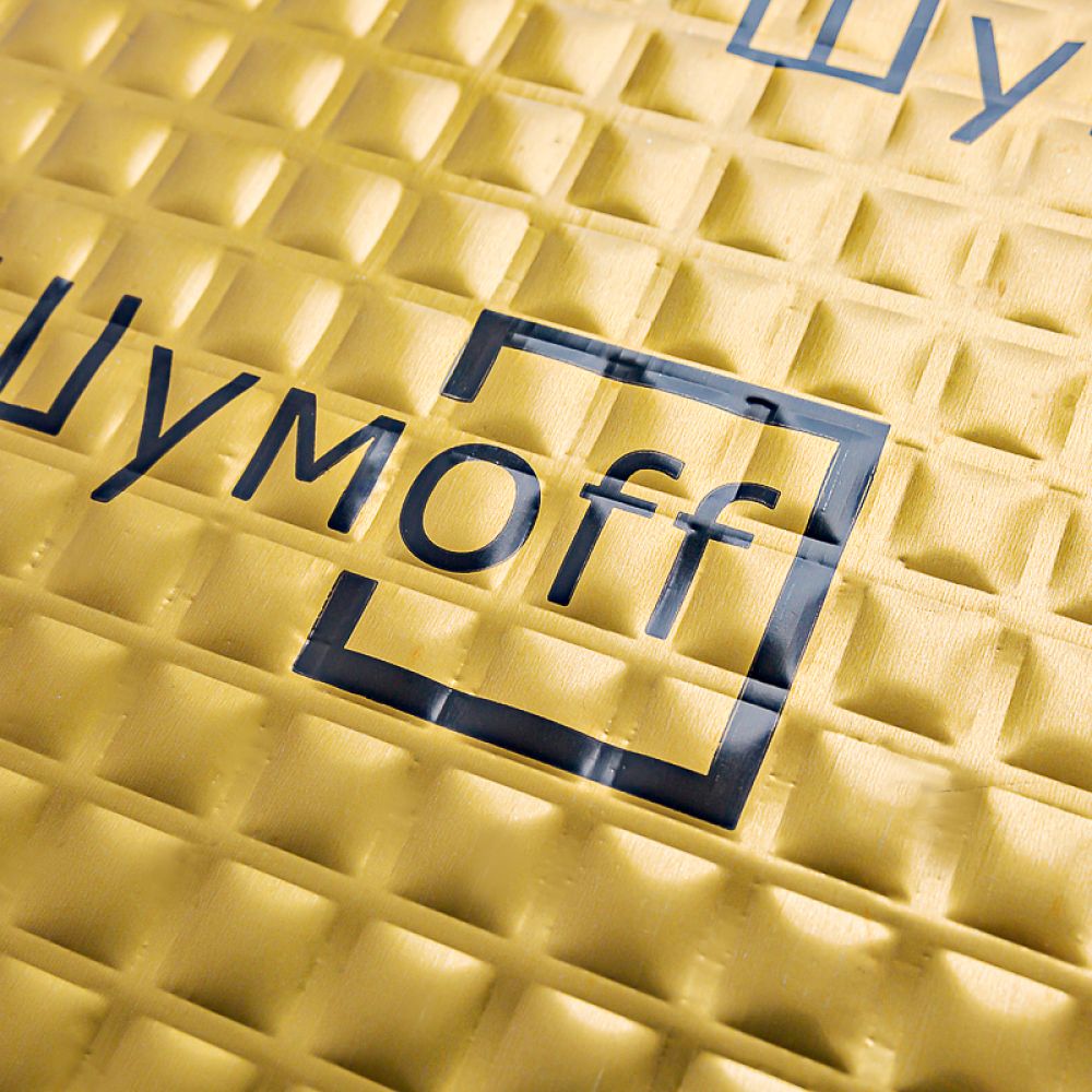 Мастичный слой - высоконаполненная полимерная композиция на каучуковой основе с комплексом компонентов, повышающих виброакустические свойства материала, закрытая антиадгезионной бумагой с логотипами , которая позволяет защитить монтажный слой от пыли, грязи и легких повреждений до момента монтажа.