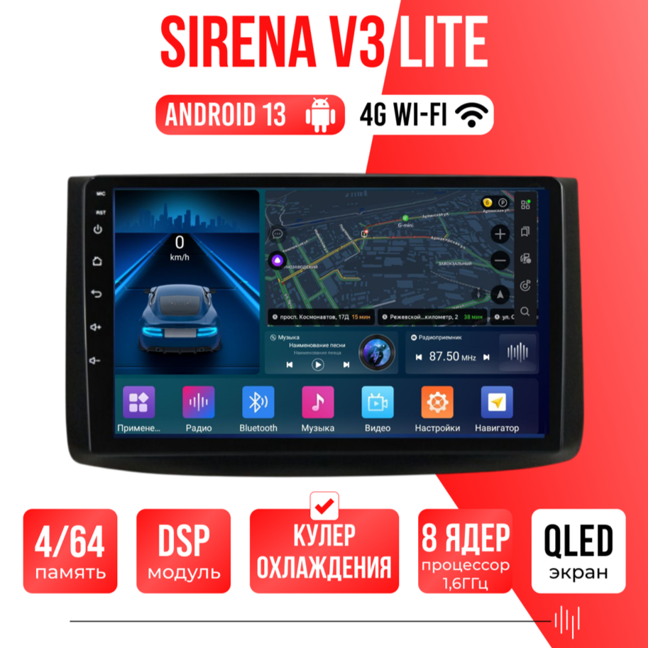 Sirena V4 PRO ОС Android Память 6/128, Wi-Fi, 4G, QLED экран. Звуковой процессор DSP. Процессор 8 ядер.