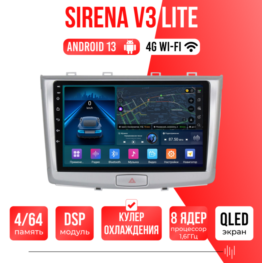 Sirena V4 PRO ОС Android Память 6/128, Wi-Fi, 4G, QLED экран. Звуковой процессор DSP. Процессор 8 ядер.