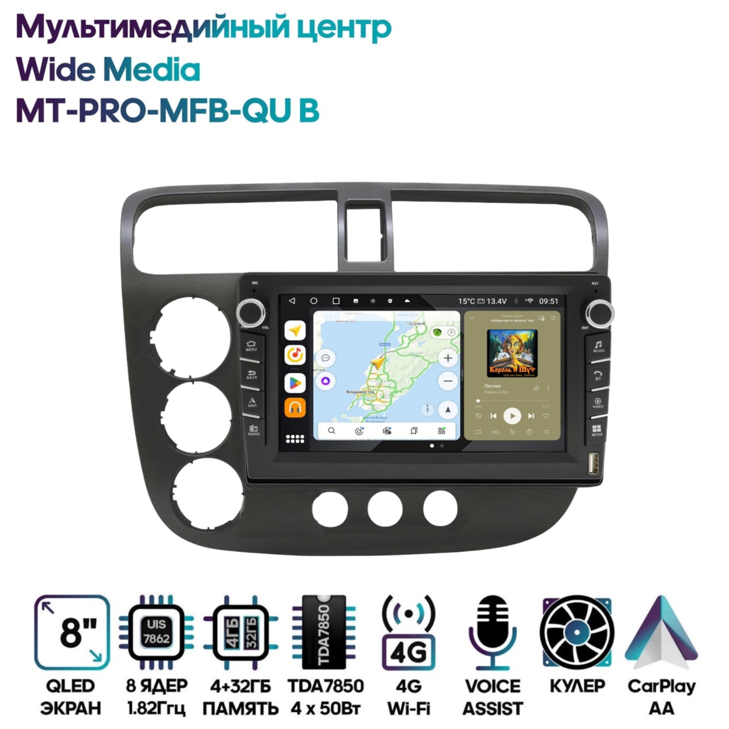 Магнитола Wide Media MT-PRO-MFB-QU B 4/32 с механической регулировкой громкости