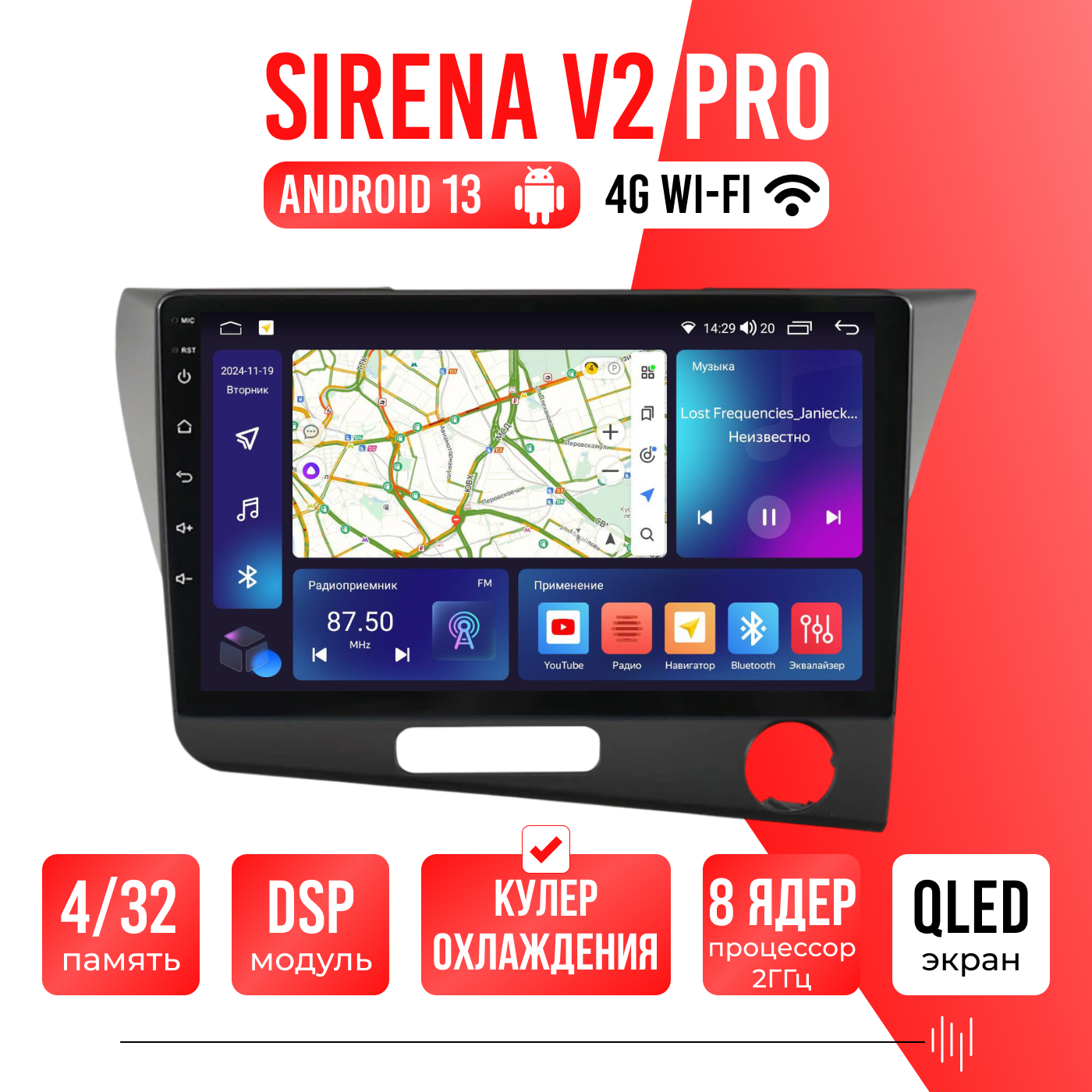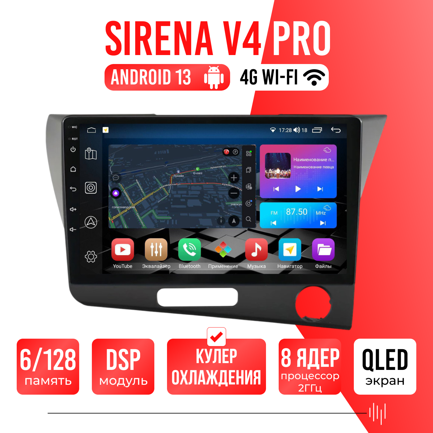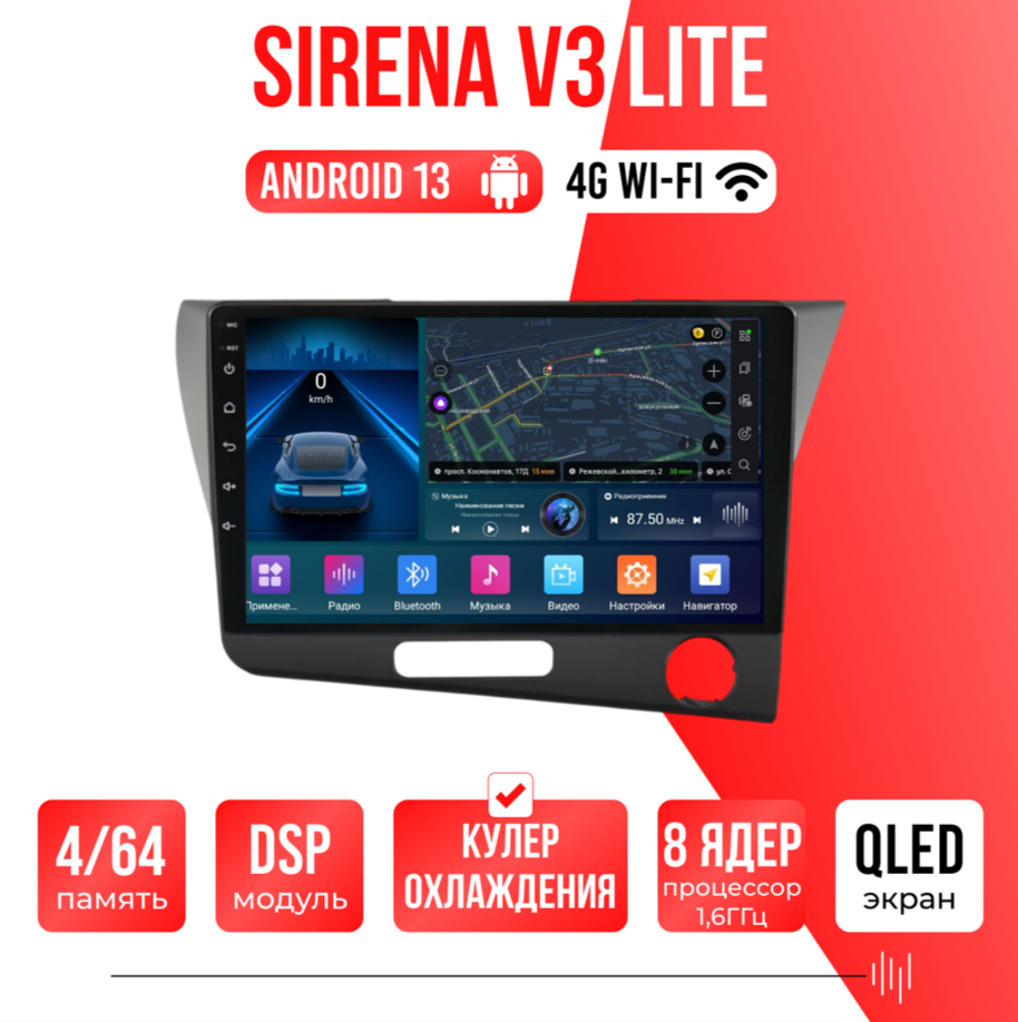 Sirena V4 PRO ОС Android Память 6/128, Wi-Fi, 4G, QLED экран. Звуковой процессор DSP. Процессор 8 ядер.