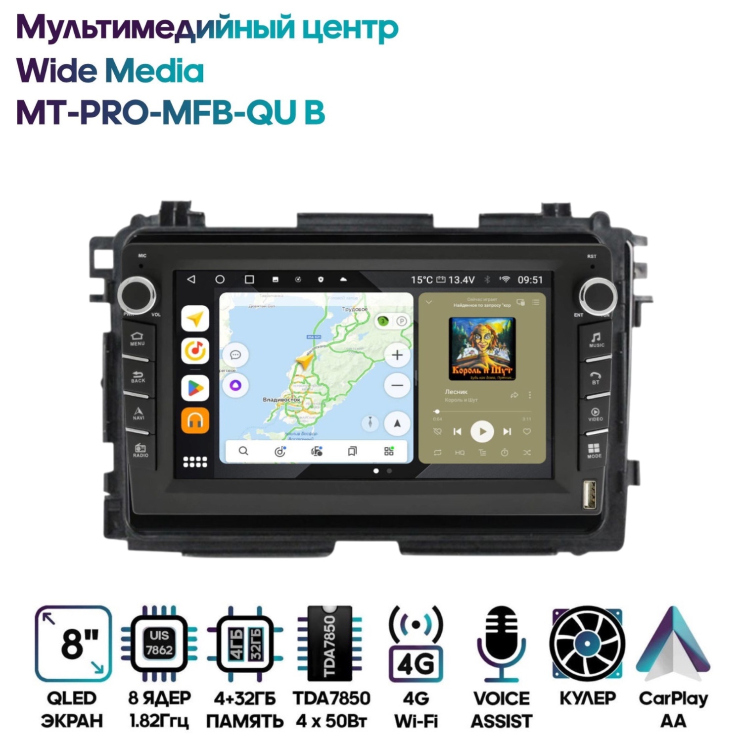 Магнитола Wide Media MT-PRO-MFB-QU B 4/32 с механической регулировкой громкости