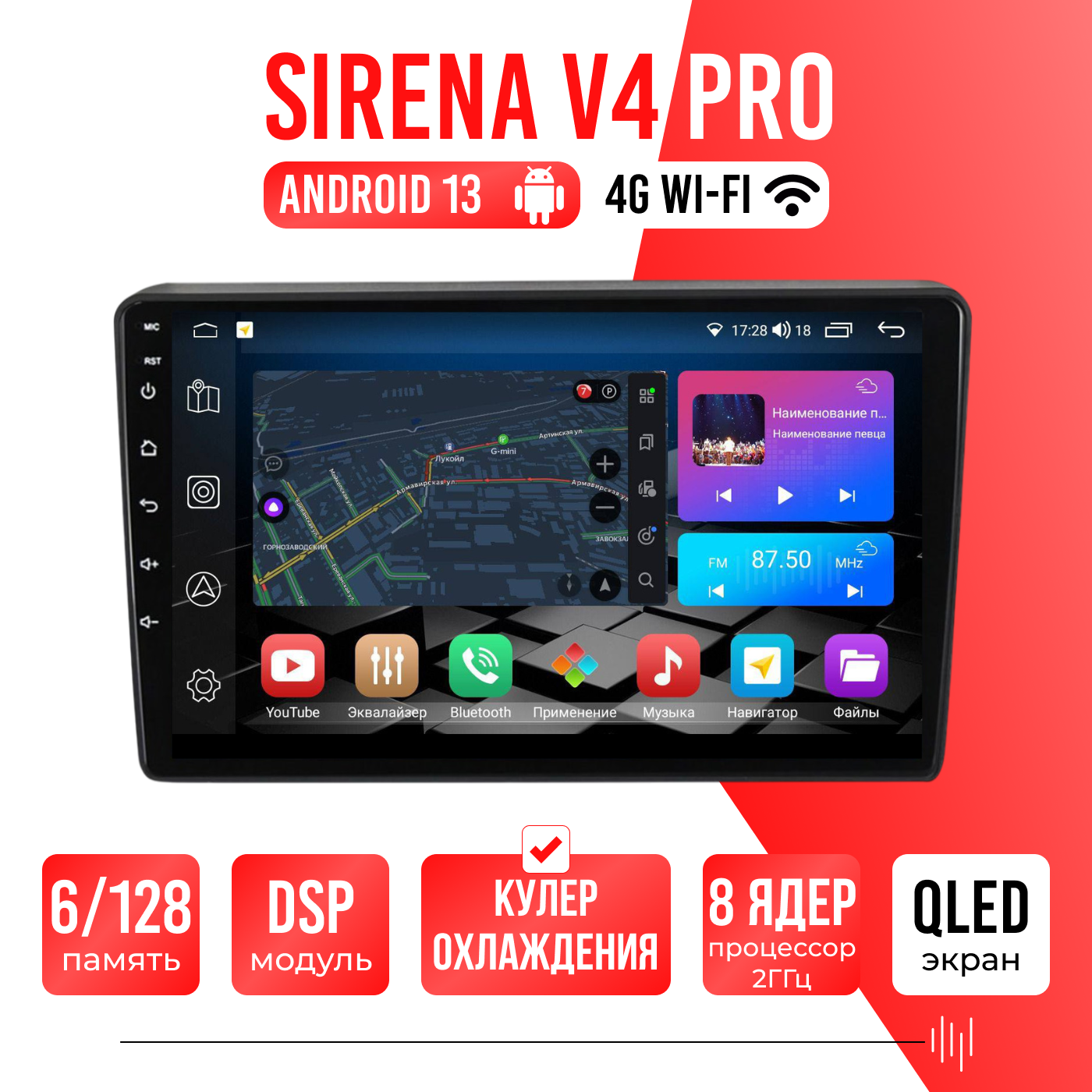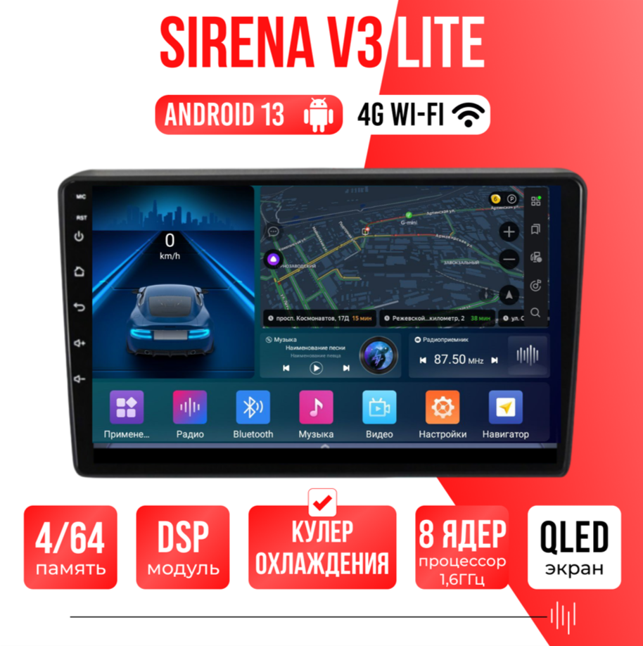 Sirena V4 PRO ОС Android Память 6/128, Wi-Fi, 4G, QLED экран. Звуковой процессор DSP. Процессор 8 ядер.