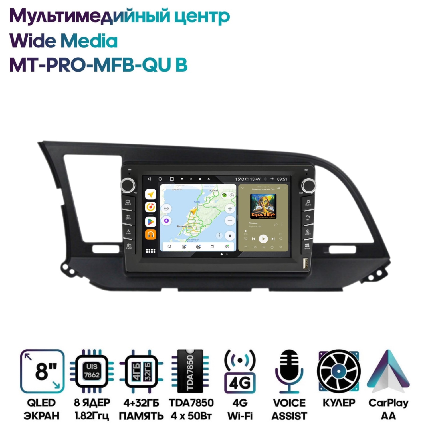 Магнитола Wide Media MT-PRO-MFB-QU B 4/32 с механической регулировкой громкости