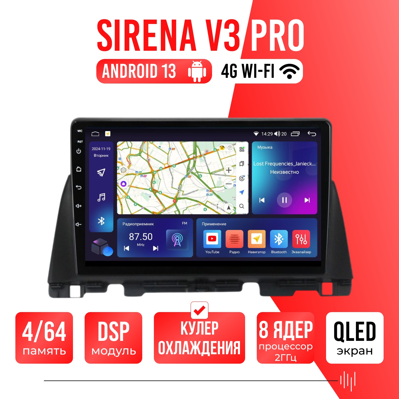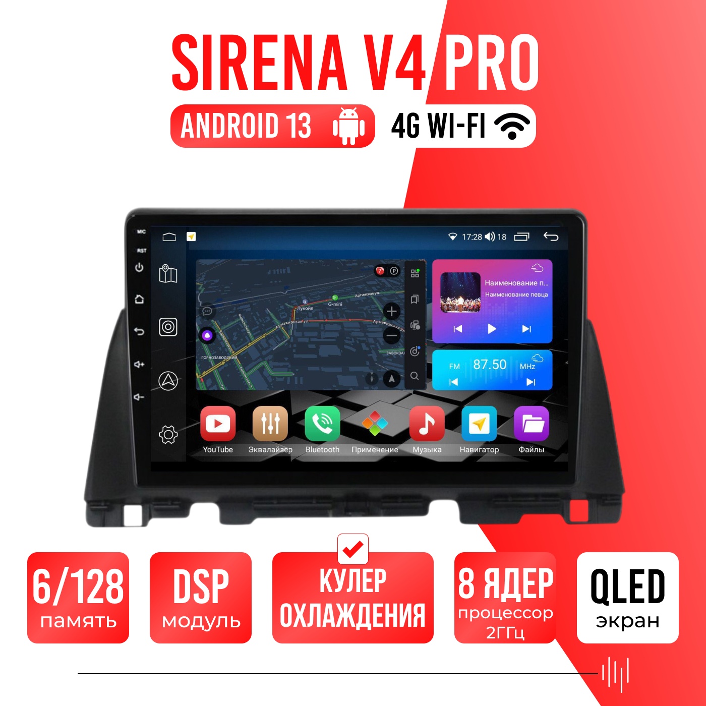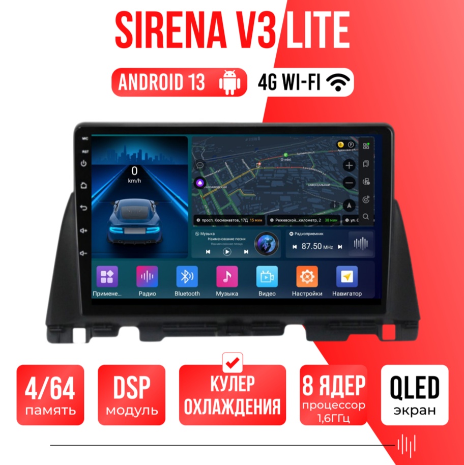 Sirena V4 PRO ОС Android Память 6/128, Wi-Fi, 4G, QLED экран. Звуковой процессор DSP. Процессор 8 ядер.