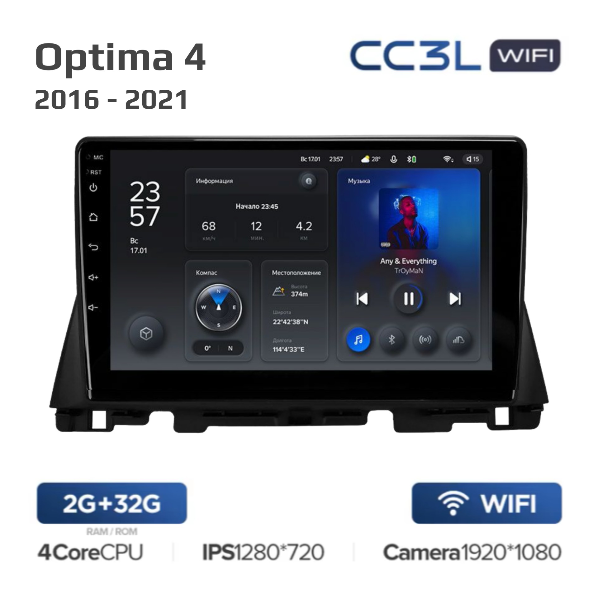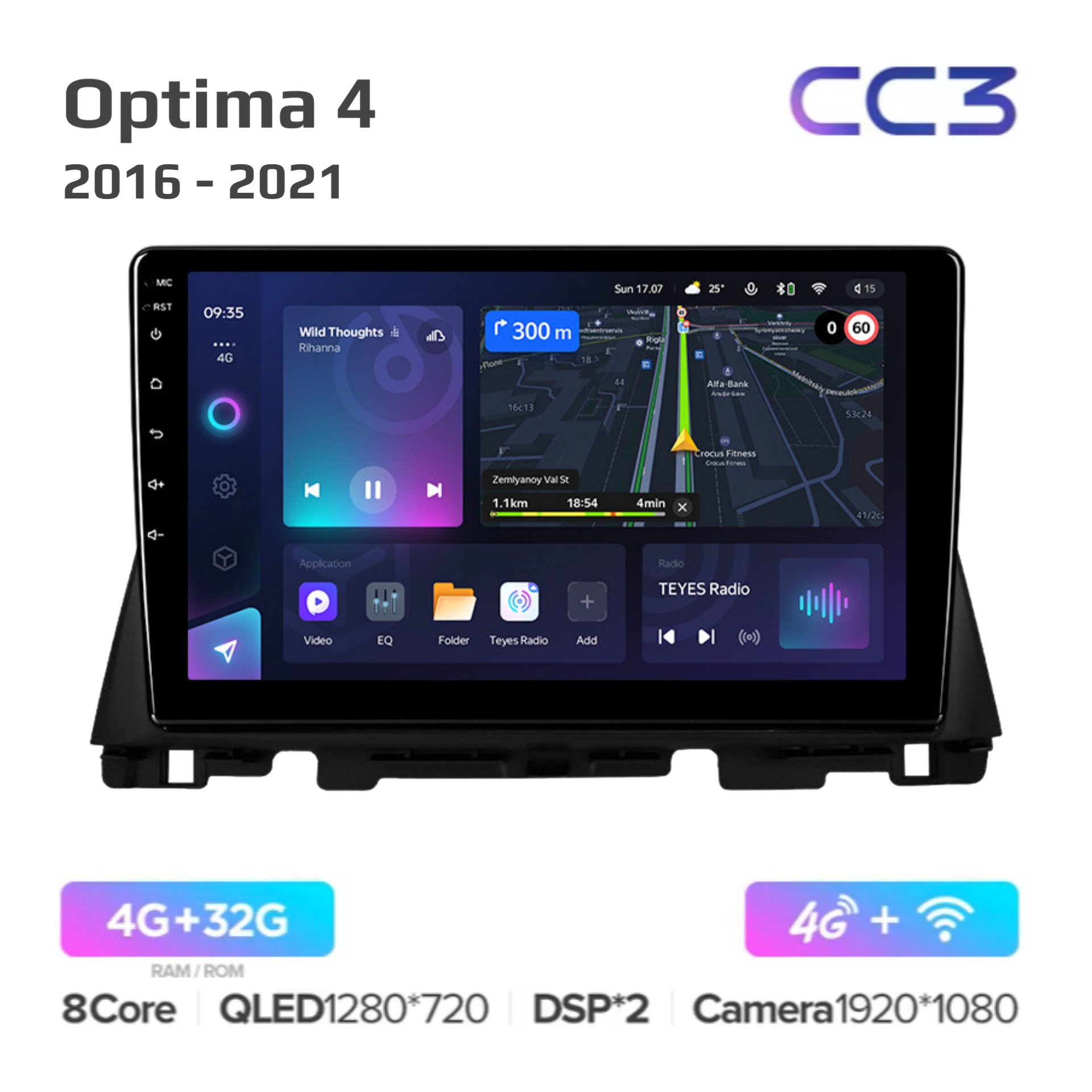 Teyes CC3 ОС Android Память 4/32, Wi-Fi, 4G, QLED экран. Звуковой процессор DSP. Процессор 8 ядер.