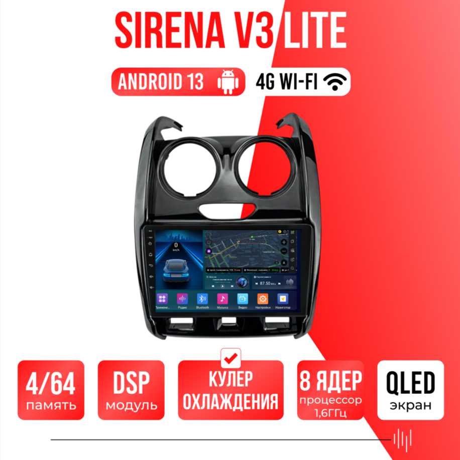 Sirena V3 Lite ОС Android Память 4/64, Wi-Fi, 4G,QLED экран. Звуковой процессор DSP. Процессор 8 ядер.