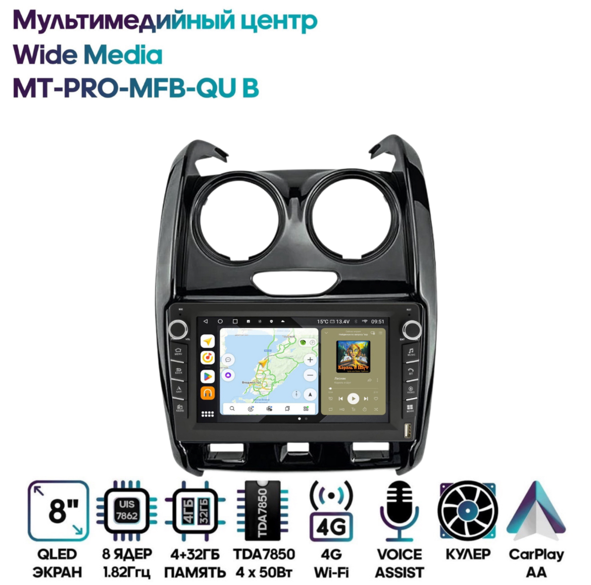Магнитола Wide Media MT-PRO-MFB-QU B 4/32 с механической регулировкой громкости