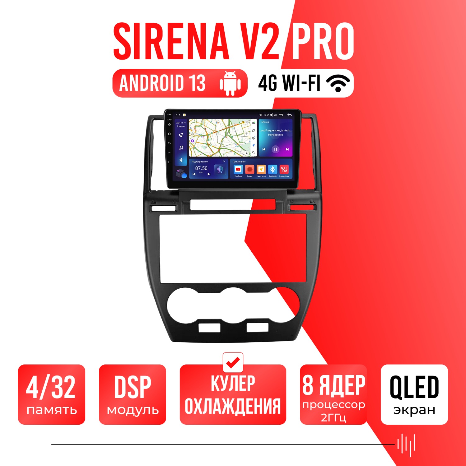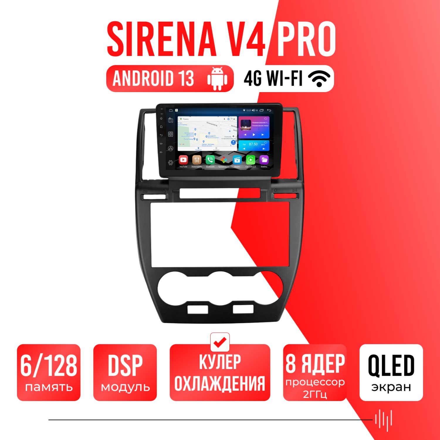 Sirena V4 PRO ОС Android Память 6/128, Wi-Fi, 4G, QLED экран. Звуковой процессор DSP. Процессор 8 ядер.