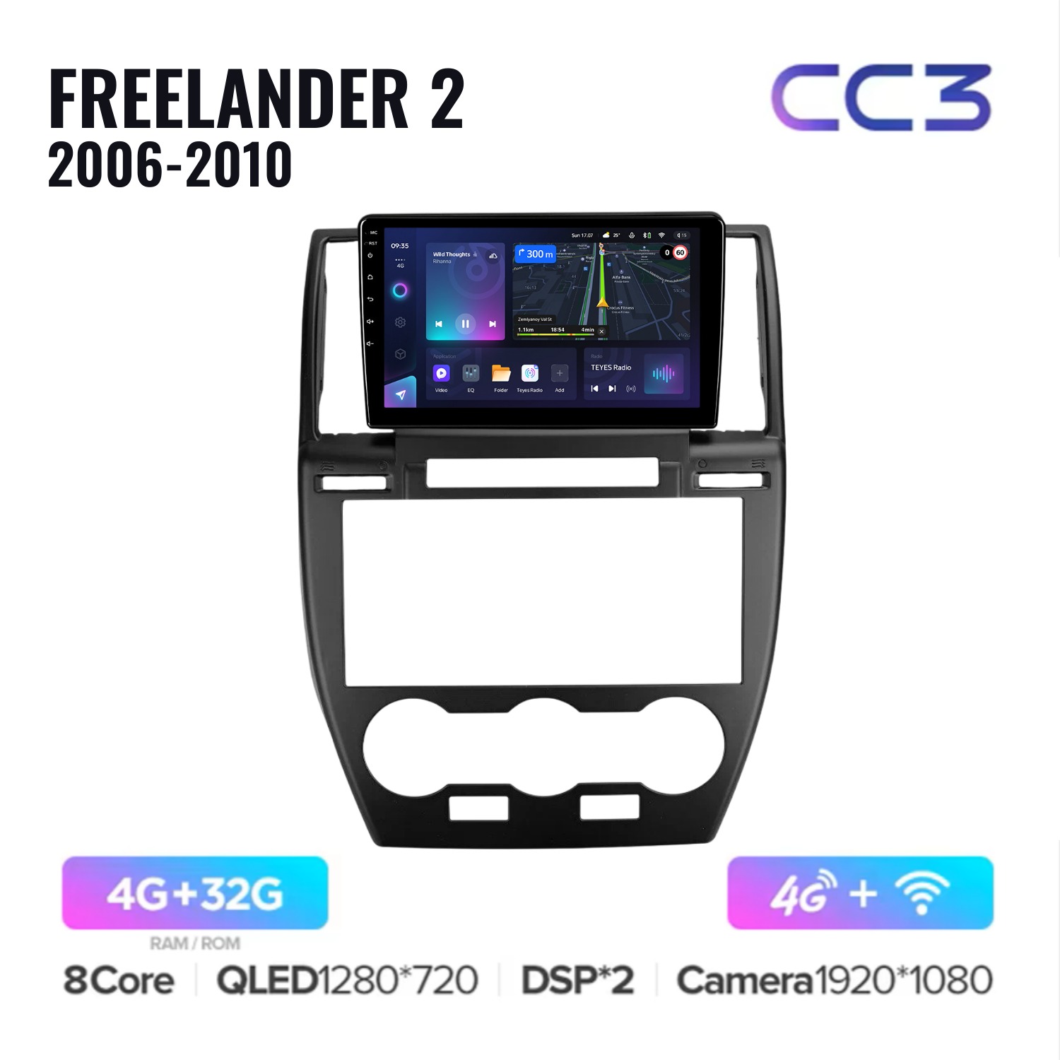 Teyes CC3 ОС Android Память 4/32, Wi-Fi, 4G, QLED экран. Звуковой процессор DSP. Процессор 8 ядер.