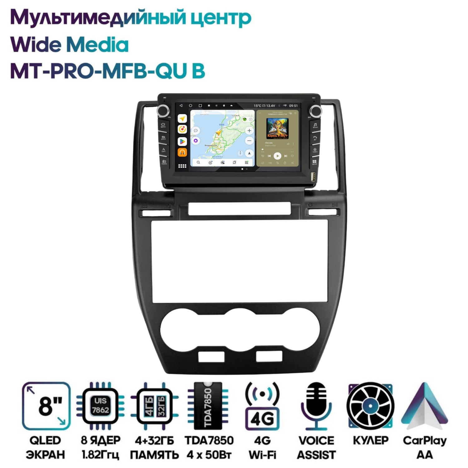 Магнитола Wide Media MT-PRO-MFB-QU B 4/32 с механической регулировкой громкости