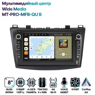 Магнитола Wide Media MT-PRO-MFB-QU B 4/32 с механической регулировкой громкости