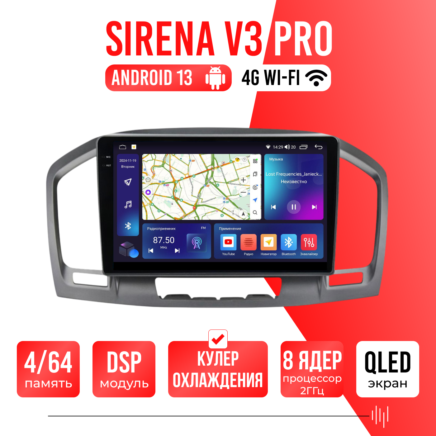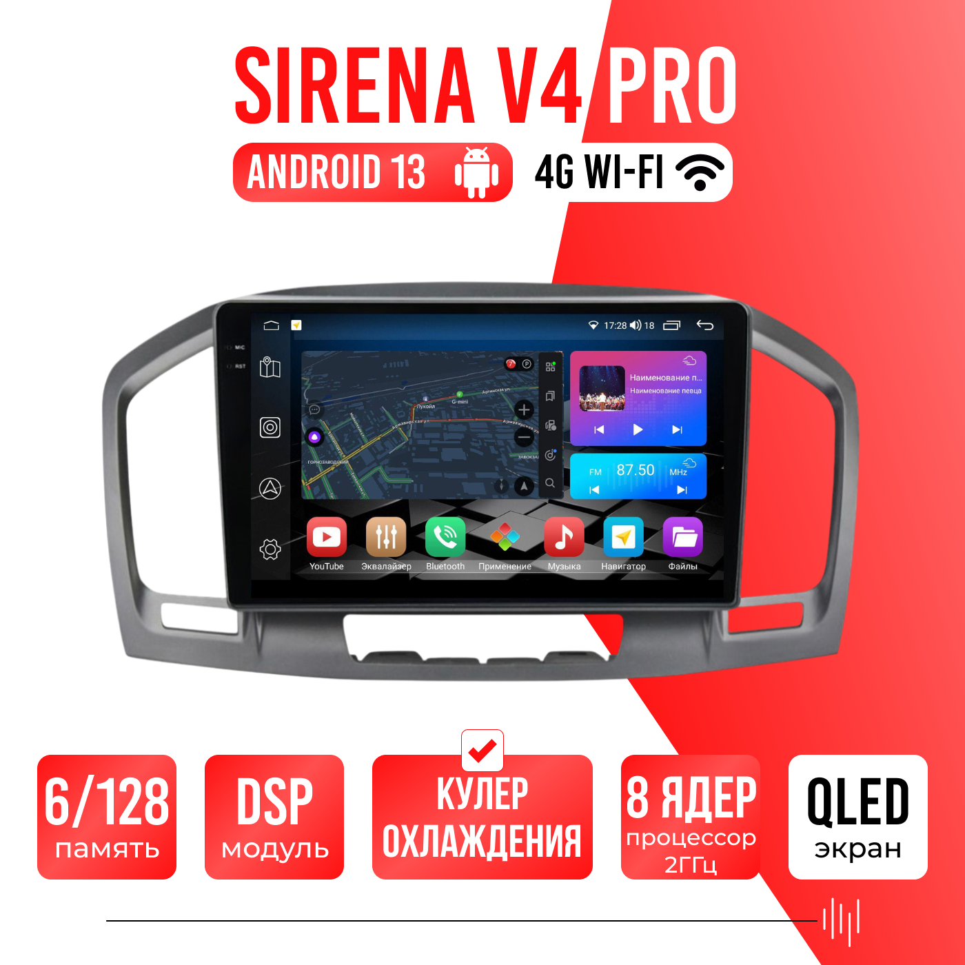 Sirena V4 PRO ОС Android Память 6/128, Wi-Fi, 4G, QLED экран. Звуковой процессор DSP. Процессор 8 ядер.