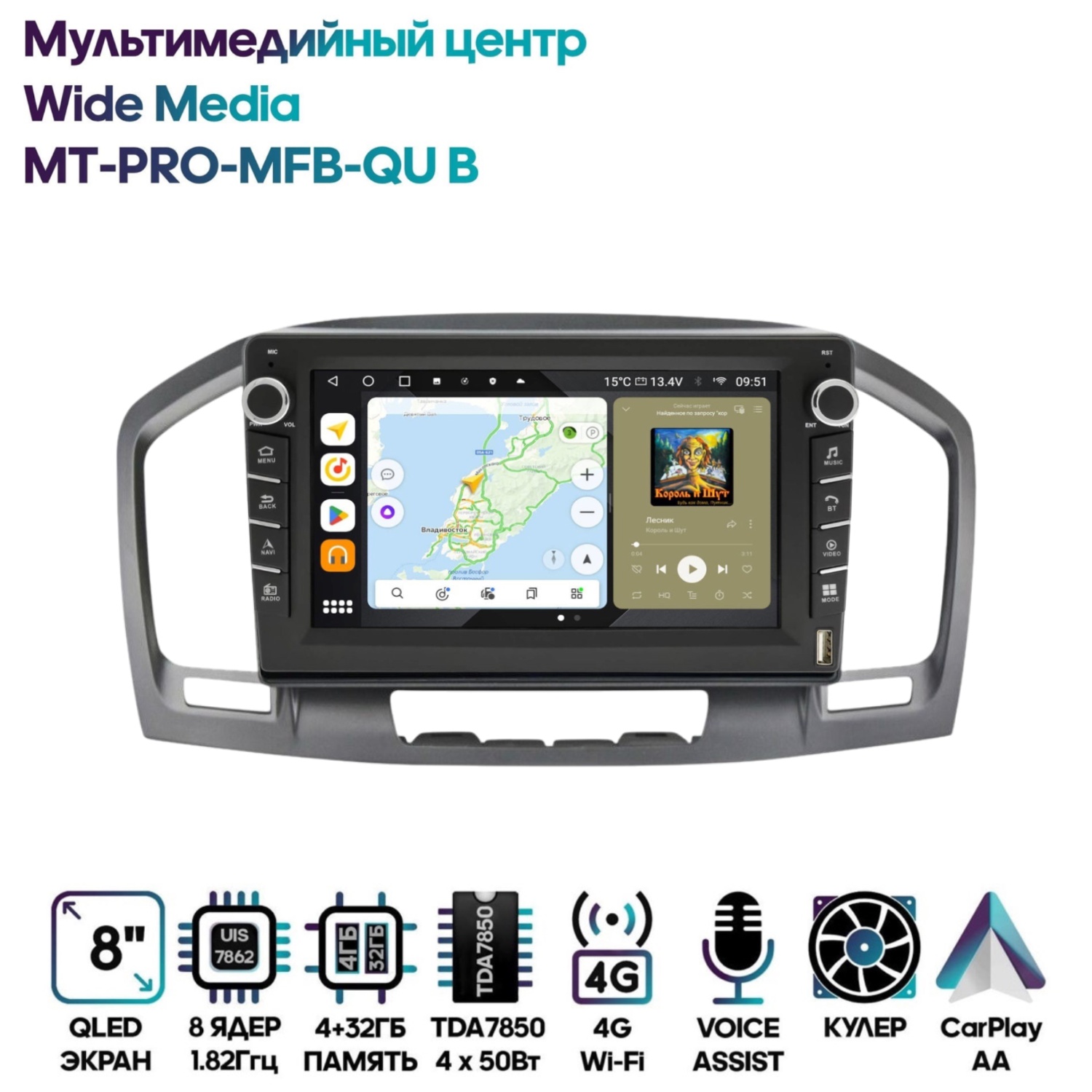 Магнитола Wide Media MT-PRO-MFB-QU B 4/32 с механической регулировкой громкости
